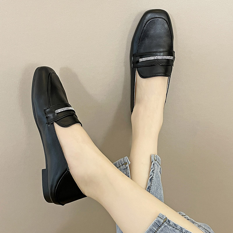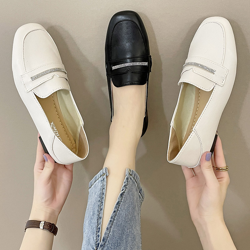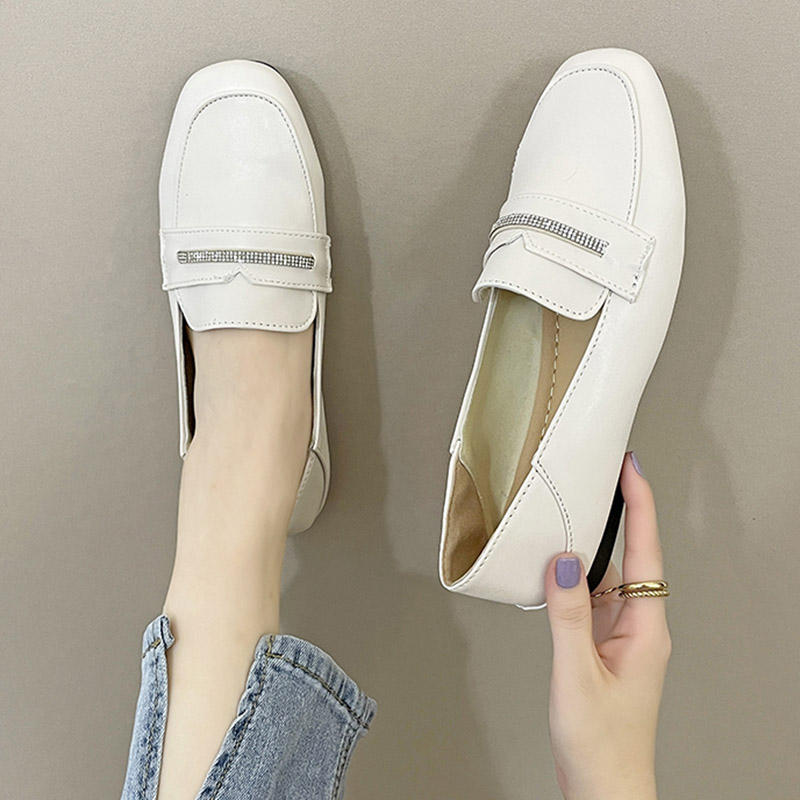 Plus Size 35-43 Women Loafers White Slip on Flat Shoe Black Leather Casual Shoes Ladies Square Toe Boat Shoe Zapatos Mujer 9285N