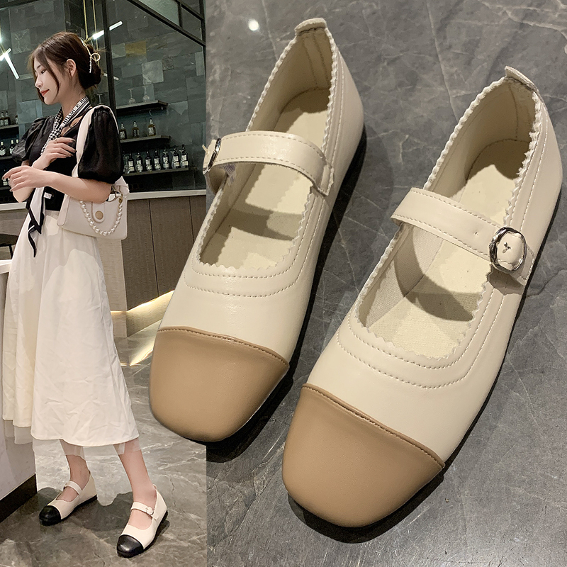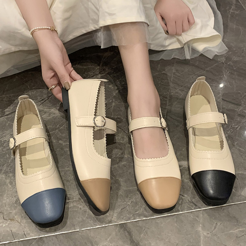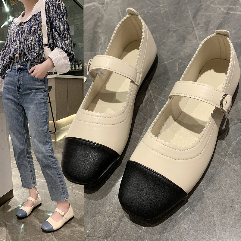 Women Flats Autumn Patchwork Mary Janes Shoes Sqaure Toe Single Shoes Low Heels Leather Casual Shoes Zapatos Mujer 9289N