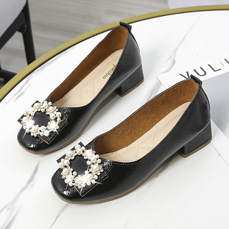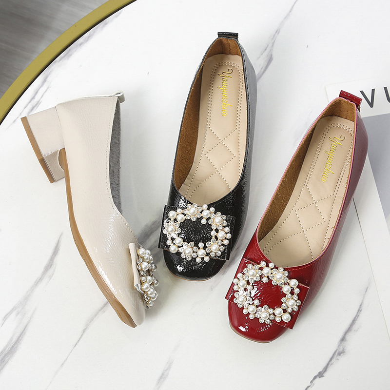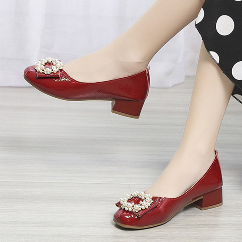 Cheap Women’s Pumps, Buy Quality Shoes Directly from China Suppliers:3cm Women Pumps Patent Leather Low Heels Dress Shoes Pearls Boat Shoes Square Heeled Crystal Ladies Shoes Ol Office Red 9293N