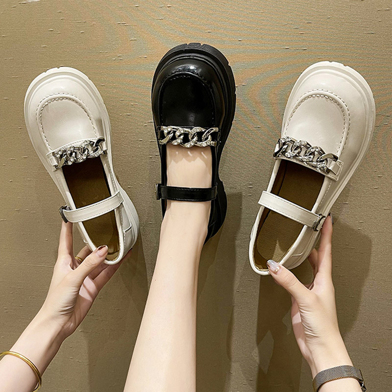 Women Oxford Shoes Metal Mary Janes Shoes Chain Lolita Shoes Ladies Platform Leather Shoes Thick Sole Pumps Zapatos Mujer 9312N