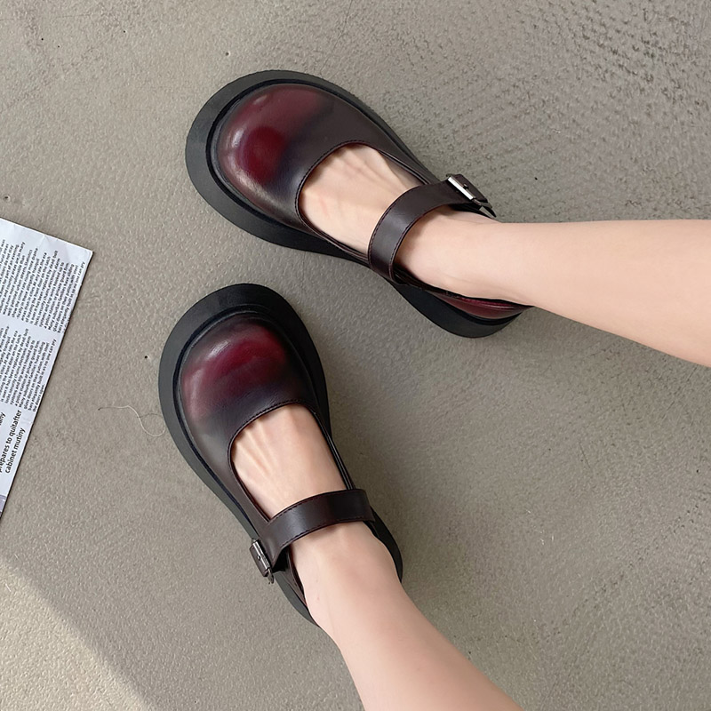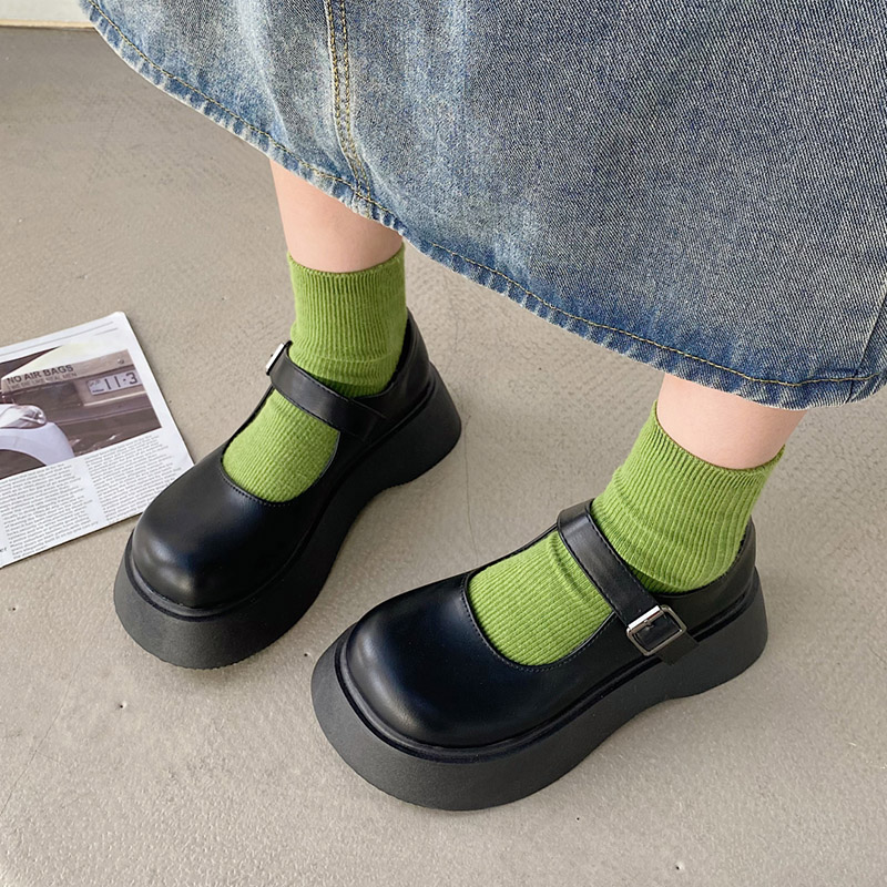 Lolita Shoes Women Mary Janes Shoes Round Toe Flat on Platform Shoes Girls Student Thick Sole Leather Princess Shoes Wihte 9316N
