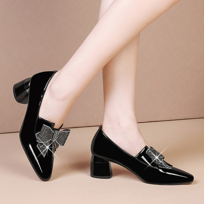 Women Patent Leather Dress Shoes High Heels White Wedding Shoes Bridal Bling Bow Pumps Slip on Ladies Shoes Spring Autumn 9352 N