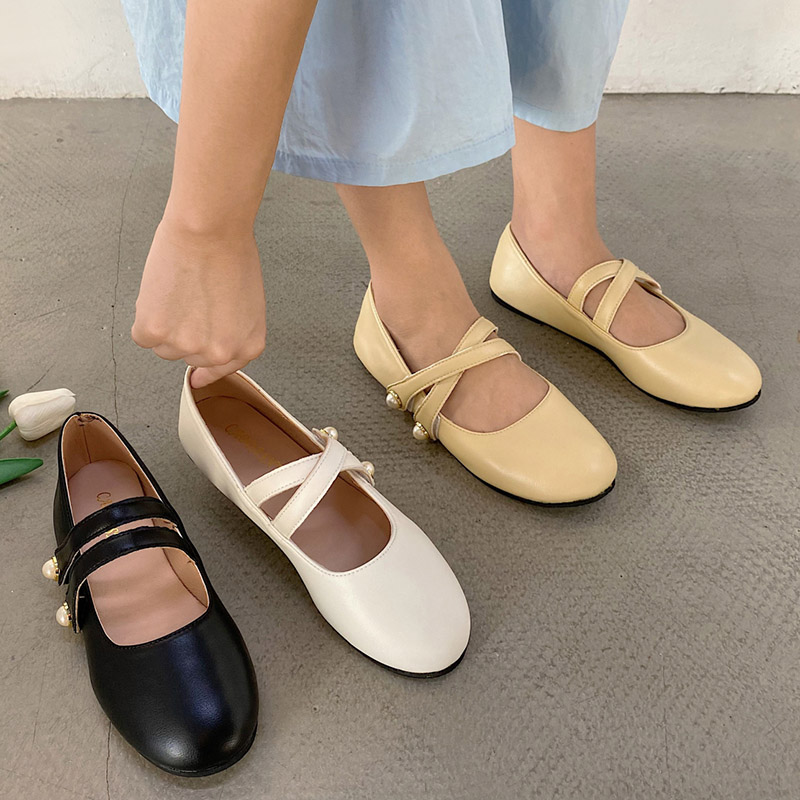 Cheap Women’s Flats, Buy Quality Shoes Directly from China Suppliers:Women Ballet Flats Autumn Cross tied Mary Janes Shoes Woman Boat Shoes Pearls Leather Casual Shoes Black White Yellow 9353N