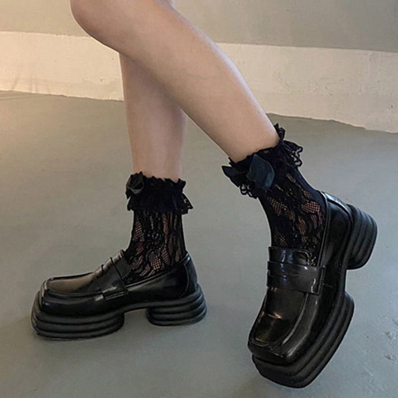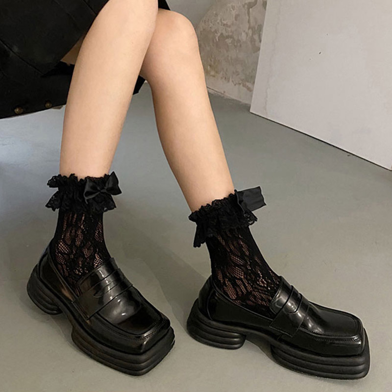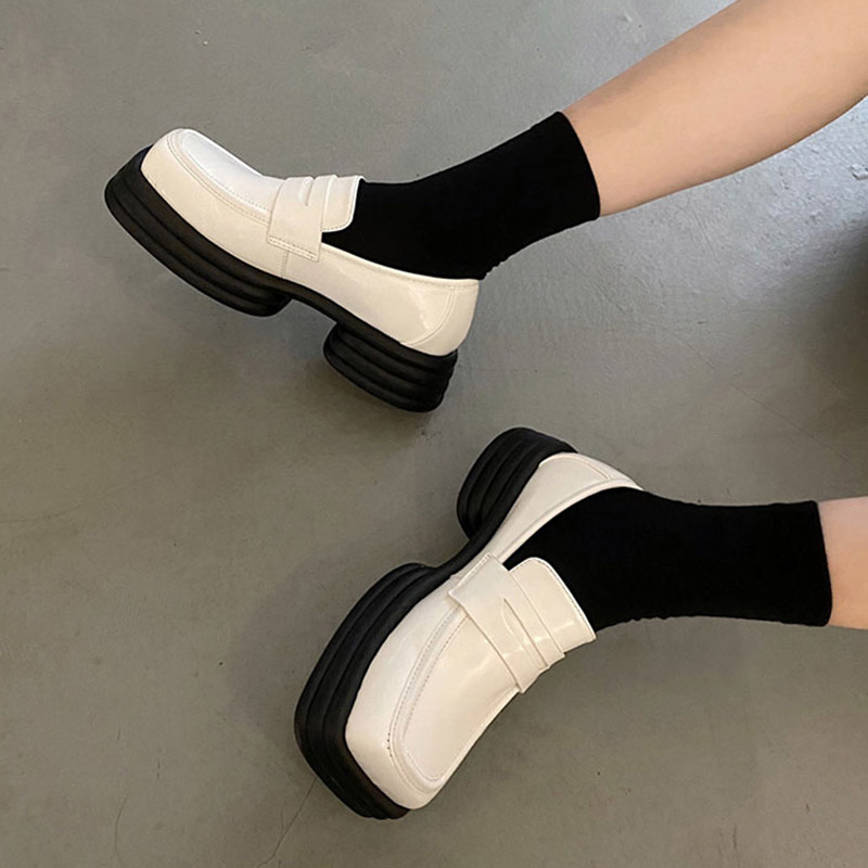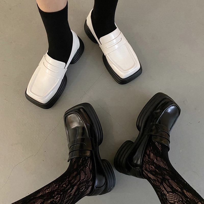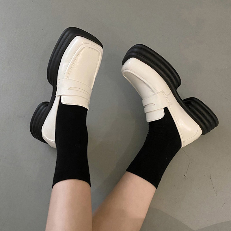 Women Oxford Shoes British Style Square Toe Platform Leather Shoes Thick Sole Loafers Retro Woman Slip on Casual Shoe 9357N