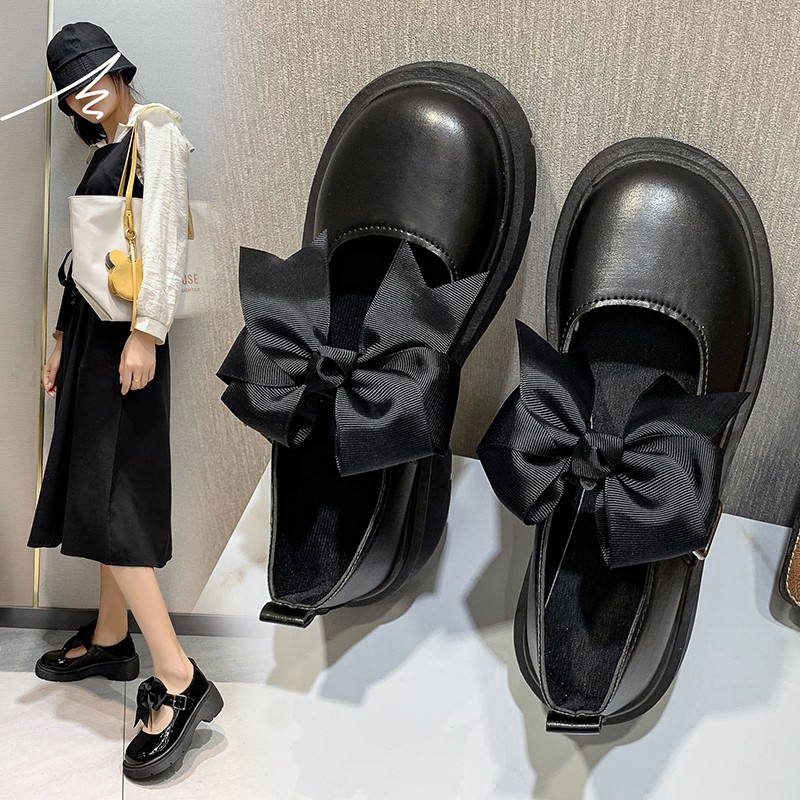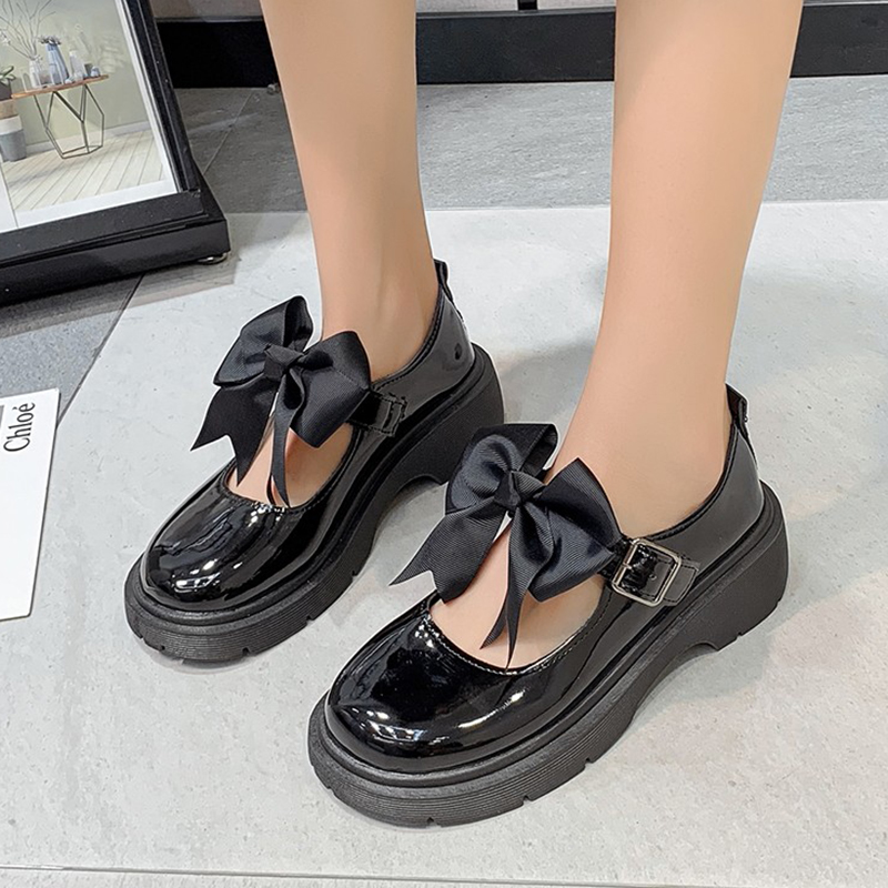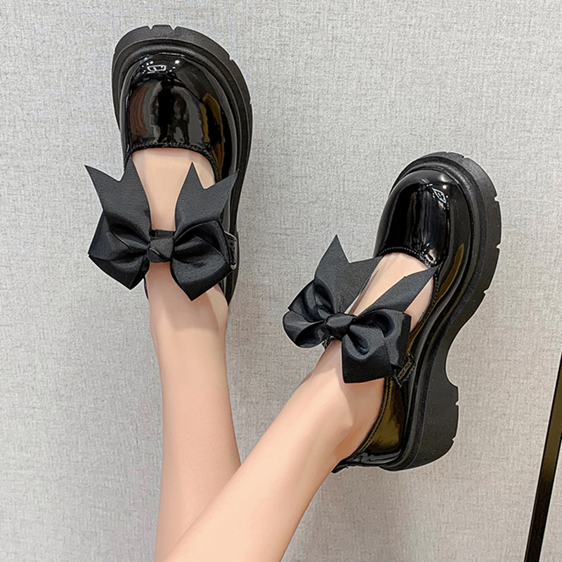 Lolita Shoes Round Toe Big Bow Mary Janes Shoes Women Oxford Shoes Platform Leather Casual Shoes Thick Sole Zapatos Mujer 9367N
