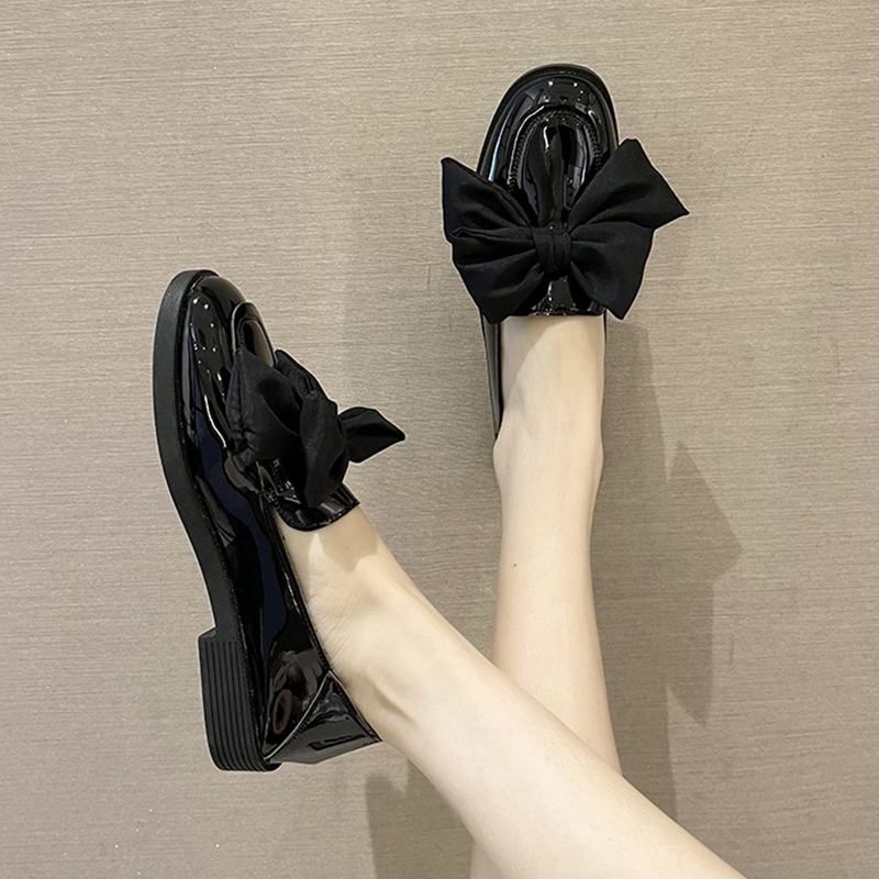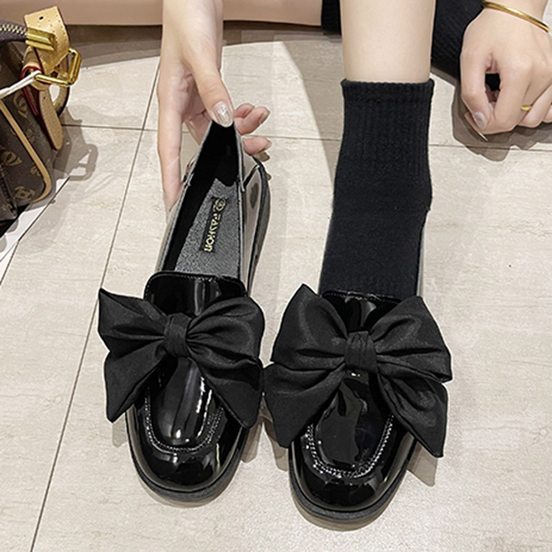 Spring Autumn Women Oxford Shoes Leather Slip on Flat Shoes Woman Big Bowtie Loafers Boat Shoes Female Flats Zapatos Mujer 9379N
