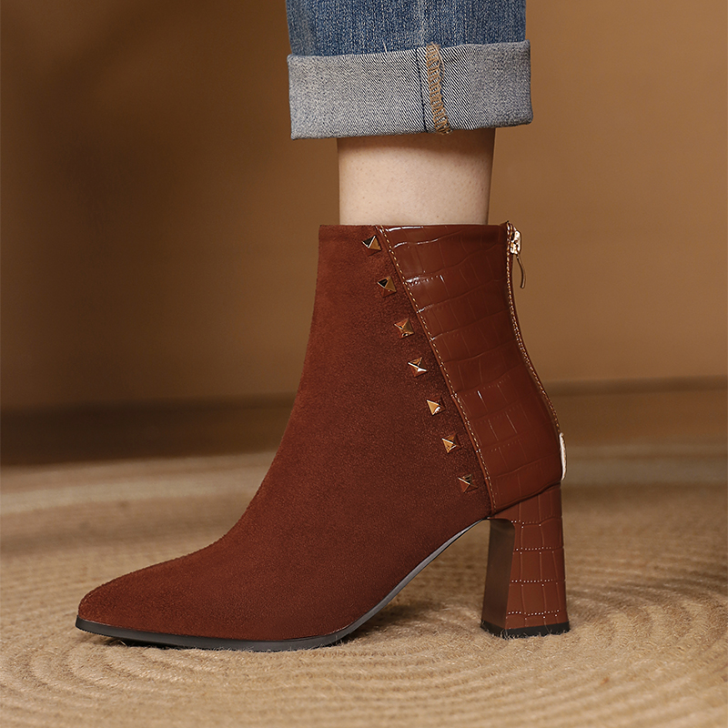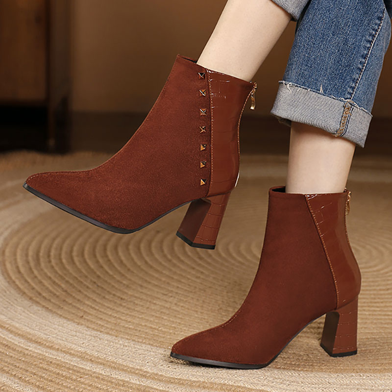 Cheap Ankle Boots, Buy Quality Shoes Directly from China Suppliers:Women Ankle Boots Winter Pointed Toe Fashion Boots Faux Suede High Heels Dress Shoes Rivets Chunky botas mujer Black 9395N