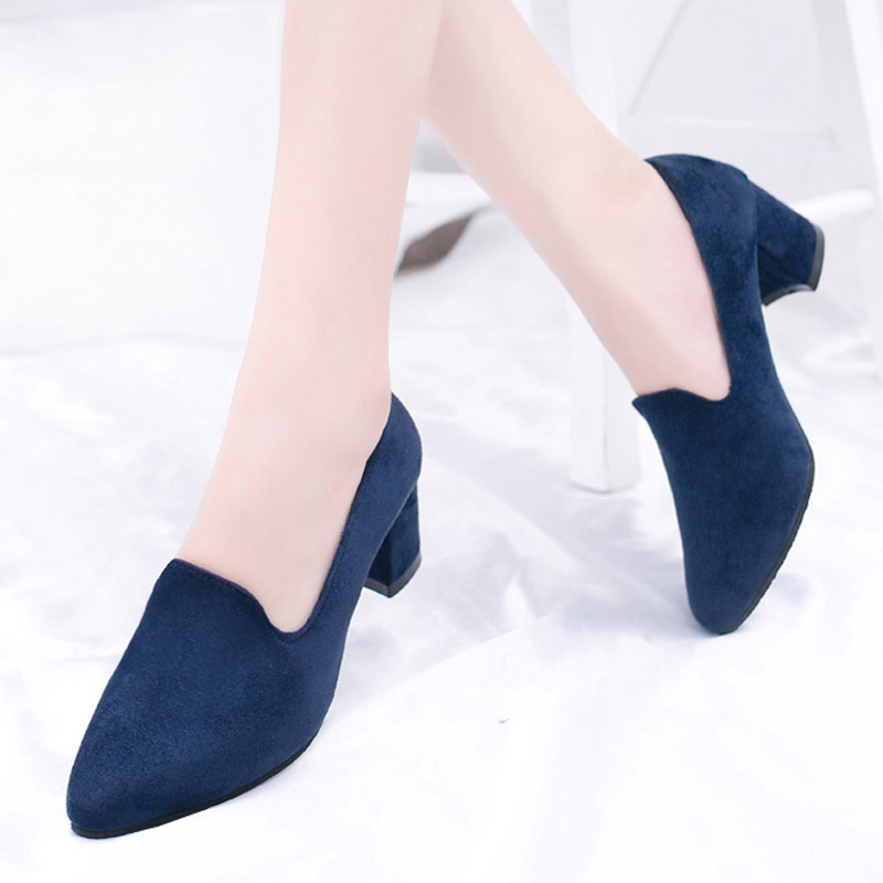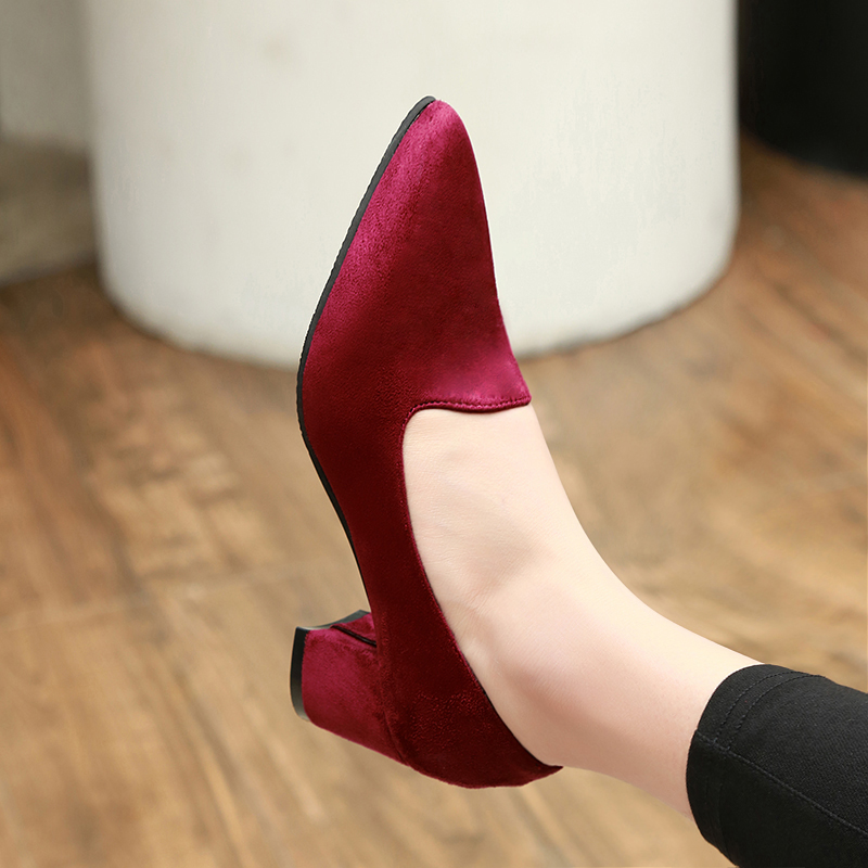 Plus Size 35-43 Women Pumps Faux Suede Dress Shoes Square Toe Boat Shoes Woman Metal Office Shoes Red Black zapatos mujer N7886