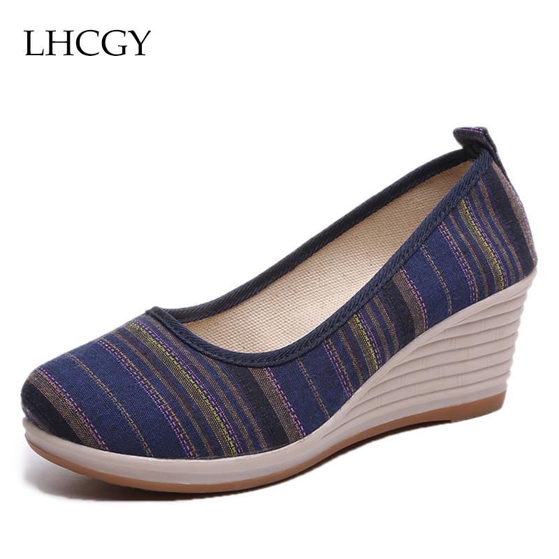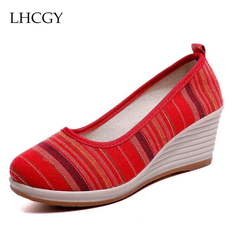Cheap Women’s Pumps, Buy Quality Shoes Directly from China Suppliers:Spring Autumn Women Wedges High Heels Shoes Canvas Striped Slip on Shoes Woman Shoes Wedge Pump Ladies Shoes zapatos mujer 6163