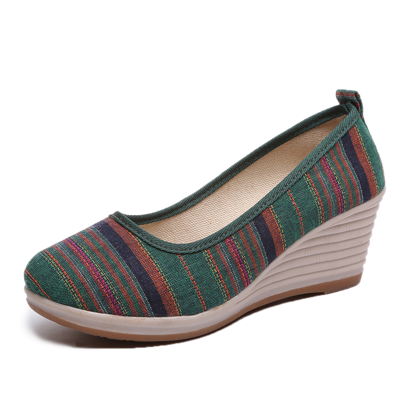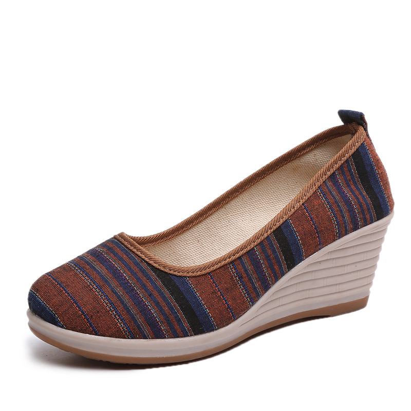 Spring Autumn Women Wedges High Heels Shoes Canvas Striped Slip on Shoes Woman Shoes Wedge Pump Ladies Shoes zapatos mujer 6163