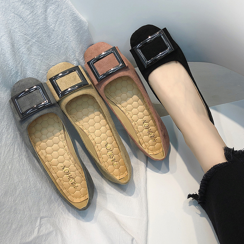 Plus Size 35-43 Women Flats Square Toe Slip on Flat Shoes Square Metal Loafers Comfortable Woman Shoes Ballet Flats 6812
