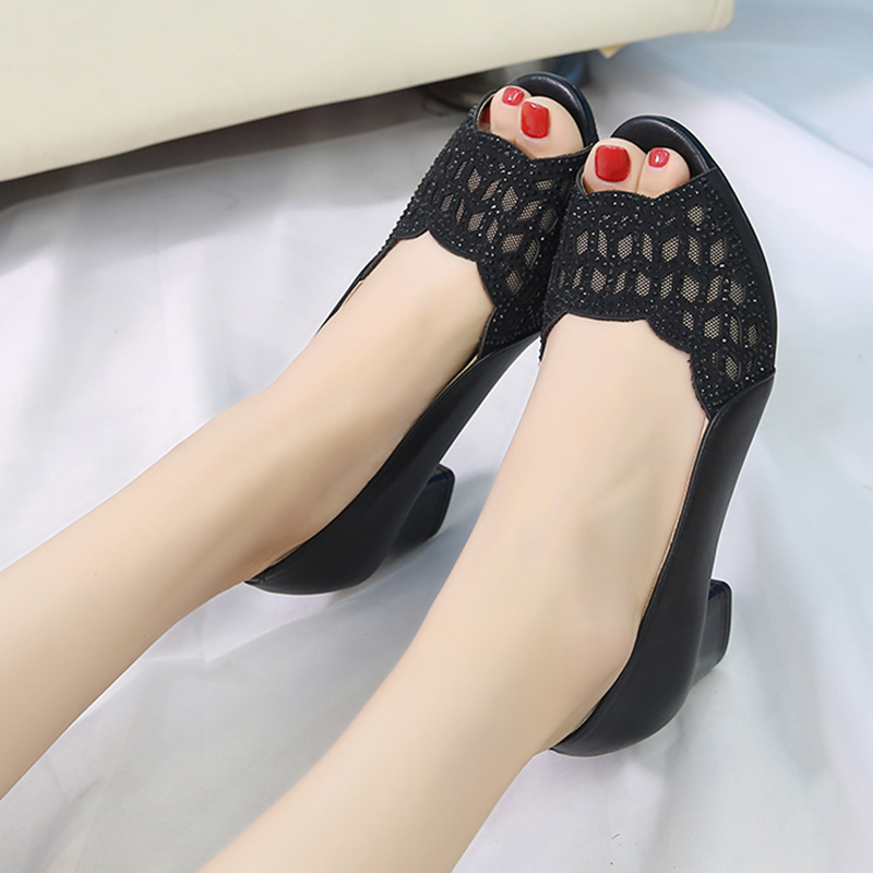 Open Toe Pumps Black High Heels Dress Shoes Summer Sandals White Wedding Shoes Hollow Out Pumps Peep toe Boat Shoes 6891