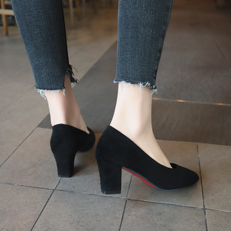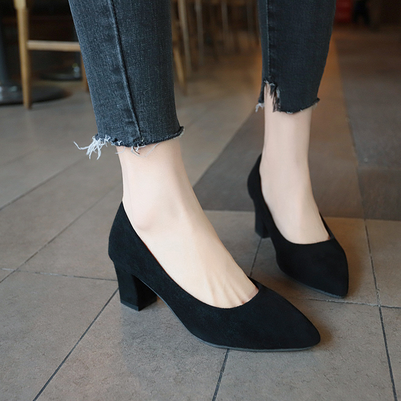 Plus Size 35-43 Women Dress Shoes Square Heeled Pumps Faux Suede Ladies Shoes Pointed Toe Boat Shoes Woman Medium Heeled N6973