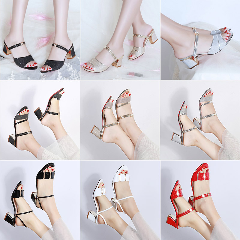 Women Slippers Summer Shoes Woman Sandals Silver Wedding Shoes Bling Slides Square Heeled Slipper Gold Sandalias Mujer 7247