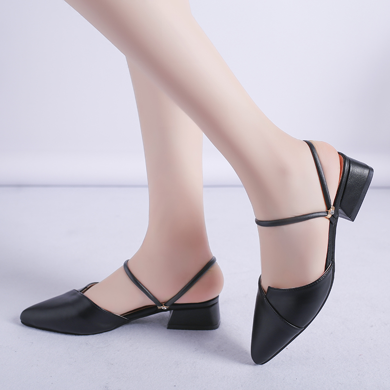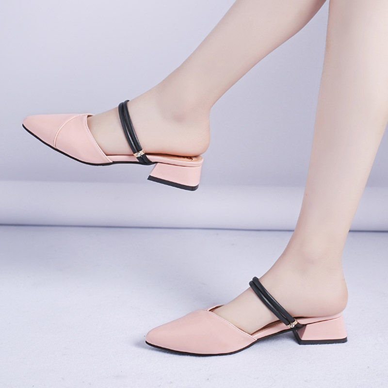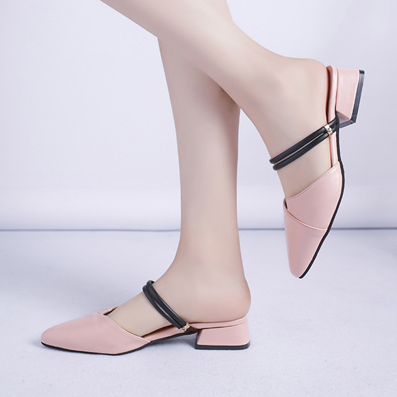 Plus size 35-42 Women Slipper Sandal Pointed Toe Low Leels Slippers Cover Toe Slides Pu Leather sandalias zapatos mujer 7310