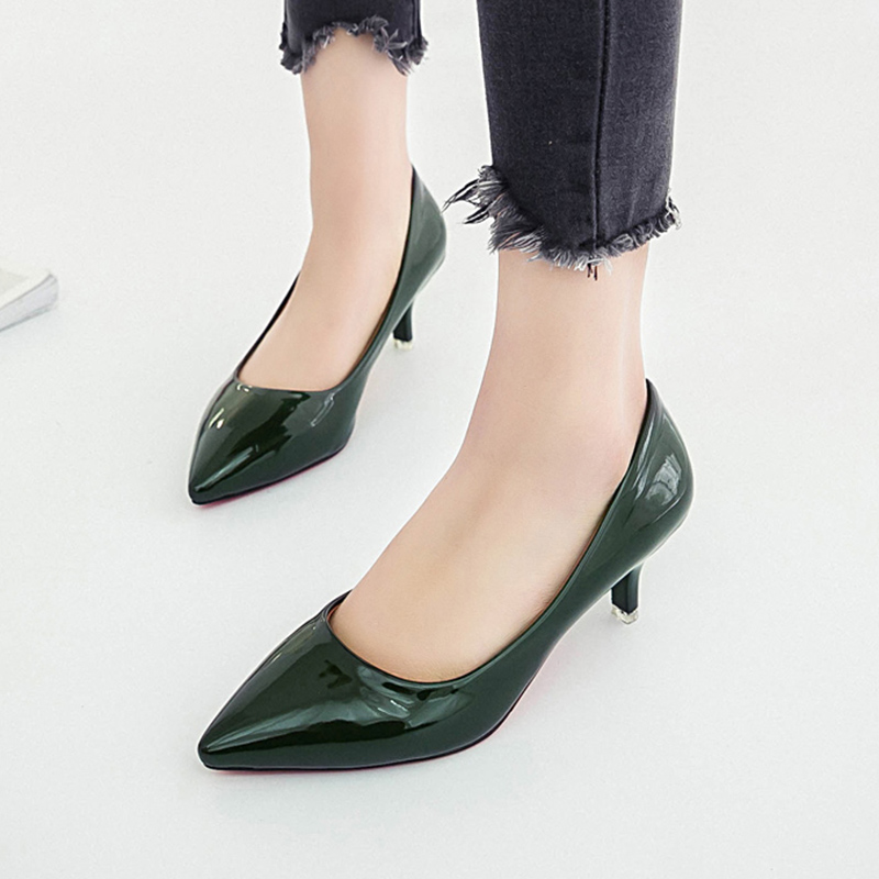 Plus Size 35-42 Ol Office Shoes Low Heels Dress Shoes Woman Patent Leather Pumps Boat Shoes Ladies Work Shoes zapatos mujer 7516