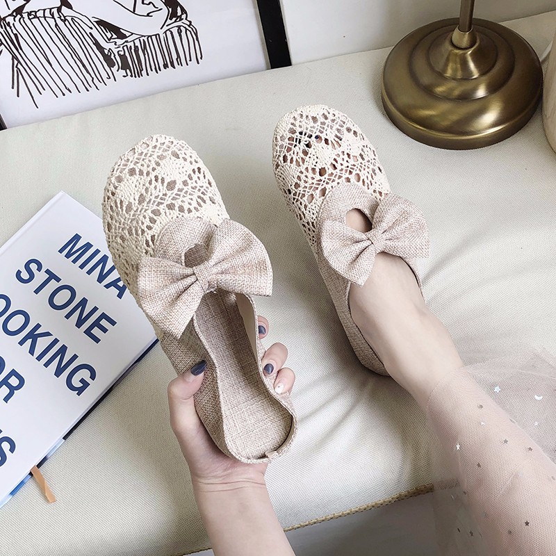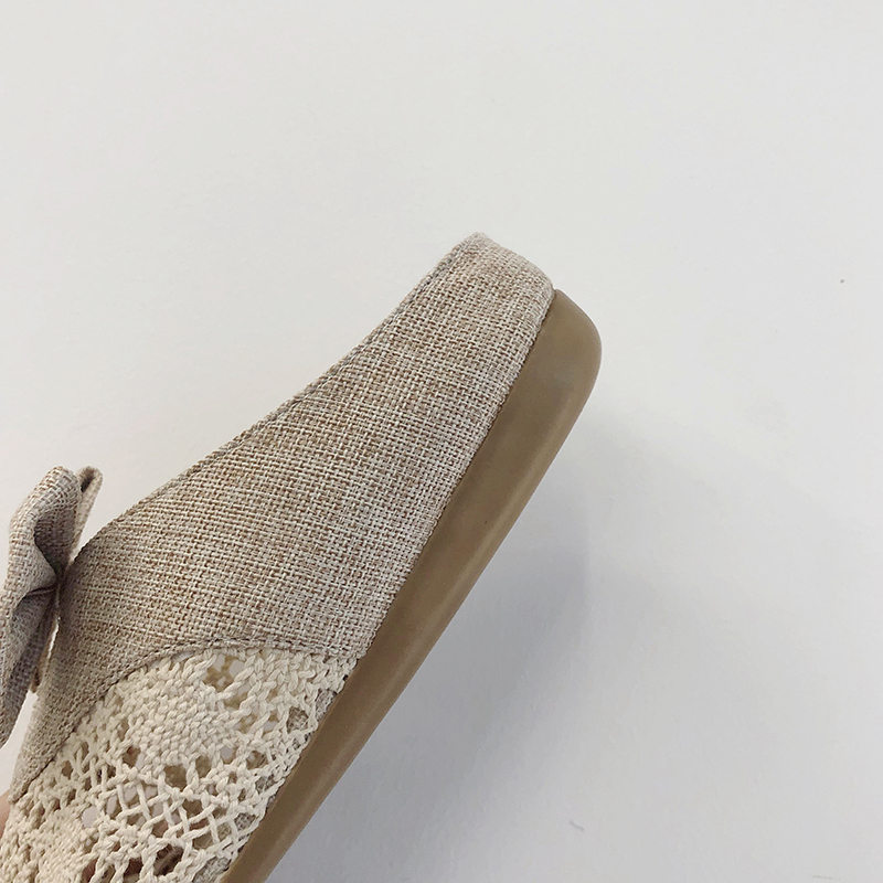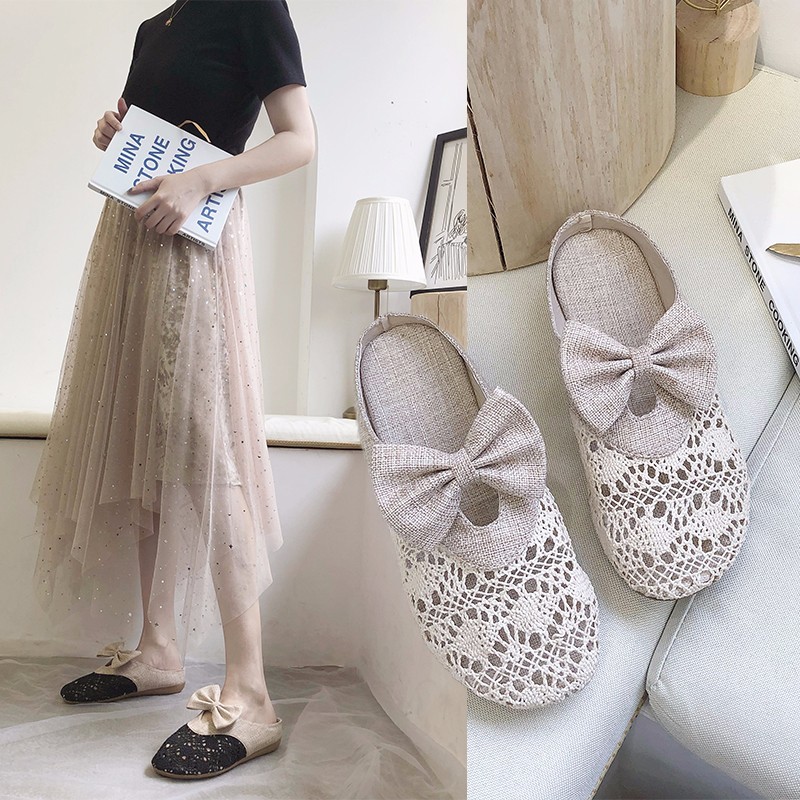 Summer Shoes Woman Slippers Lace Slides Hemp Bowtie Slip on Flat Shoes Hollow out Slipper Flip Flops chaussures femme 7611