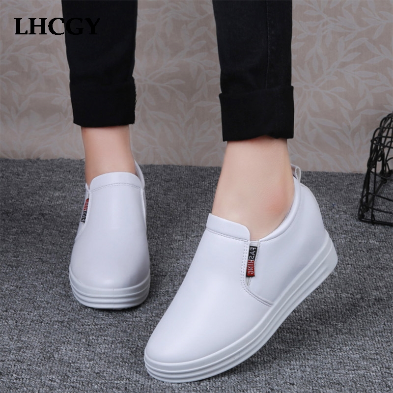 Cheap Women’s Flats, Buy Quality Shoes Directly from China Suppliers:Increasing Loafers Platform Slip on Flat Shoes Side Zip Leather Casual Shoes Woman Flats White Shoes Ladies zapatos mujer 7670