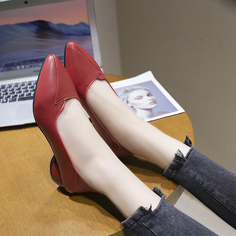 Cheap Women’s Pumps, Buy Quality Shoes Directly from China Suppliers:Spring Autumn Low Heels Dress Shoes Pointed Toe Boat Shoes Chunky Heels Slip on Shoes For Woman Black Office Shoes Red N7769