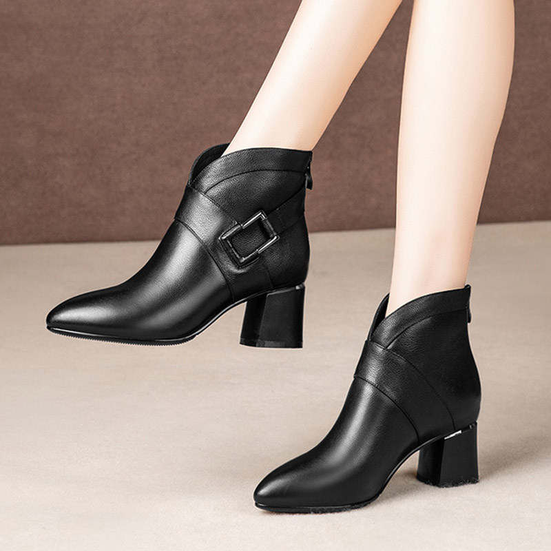 High Heels Women Ankle Boots Buckle Black Boot Office Work Shoes Woman Botas Mujer Pointed Toe Chunky Heeled Gladiator Boot 7836
