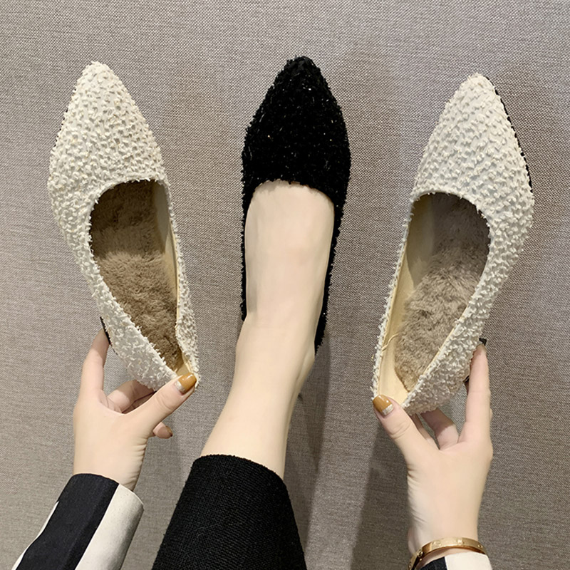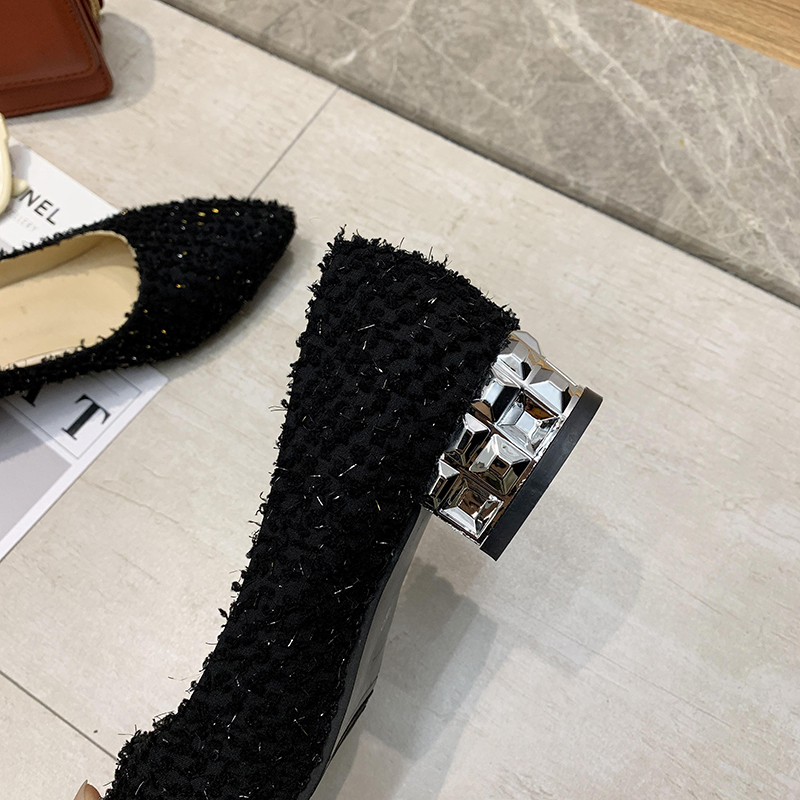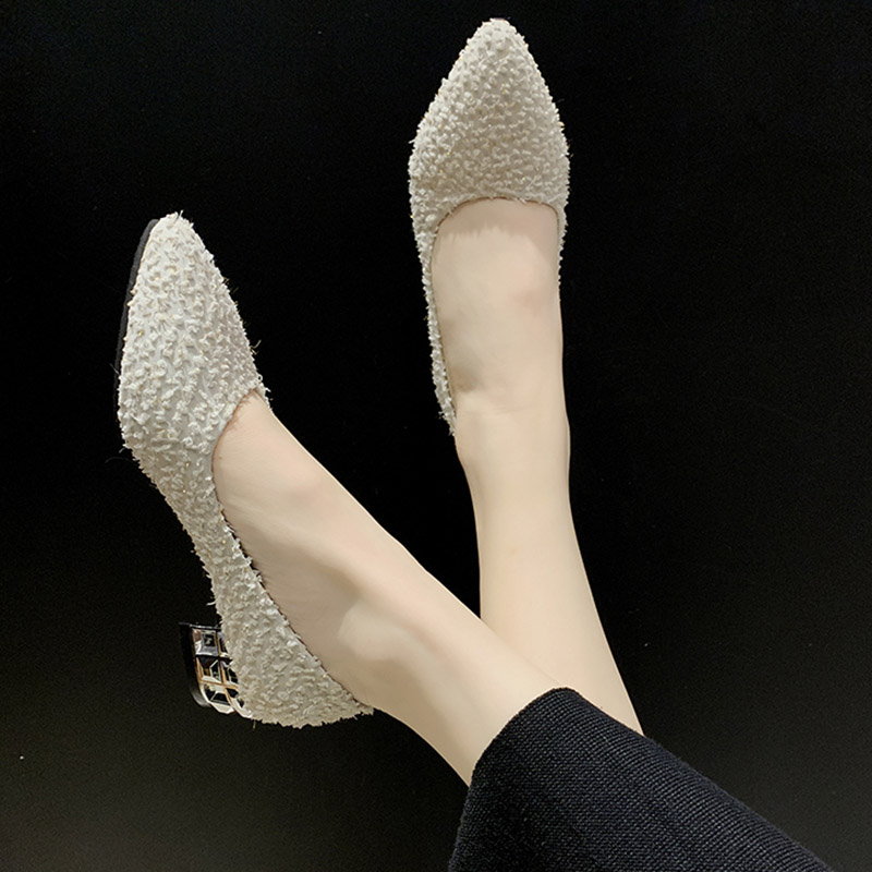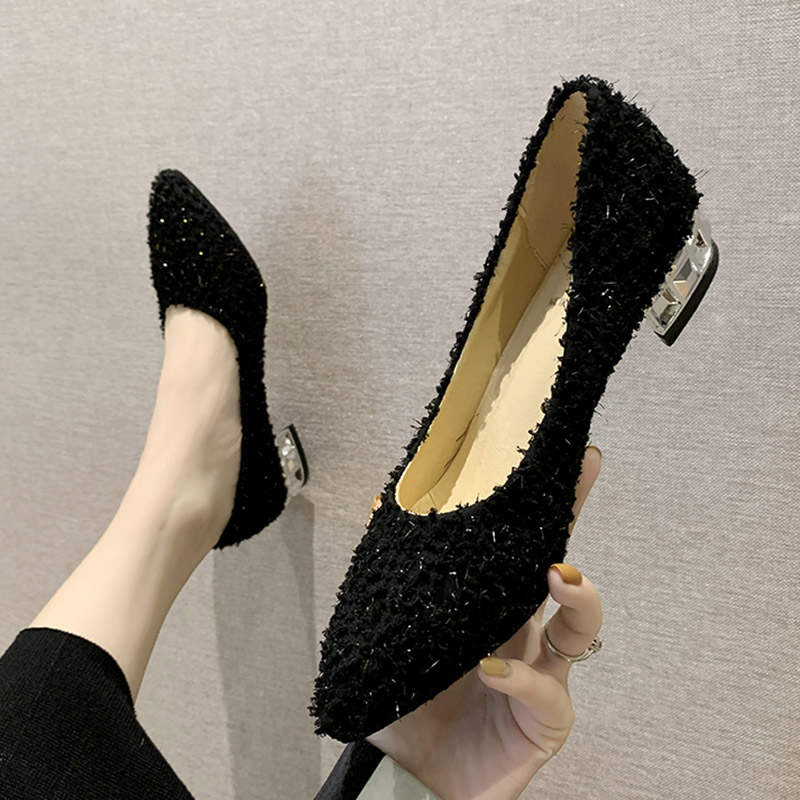 Plus Size Ol Office Lady Shoes Faux Fur Insole Pumps Bling Woman Dress Shoe Pointed Toe Silver Heels Basic Pumps Low Heels 7894N
