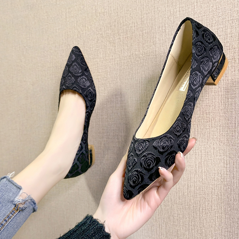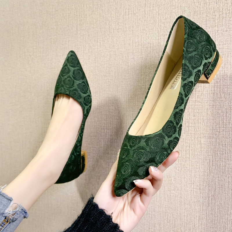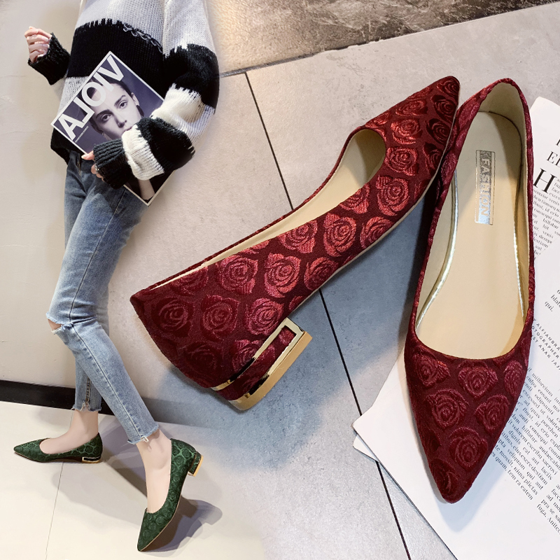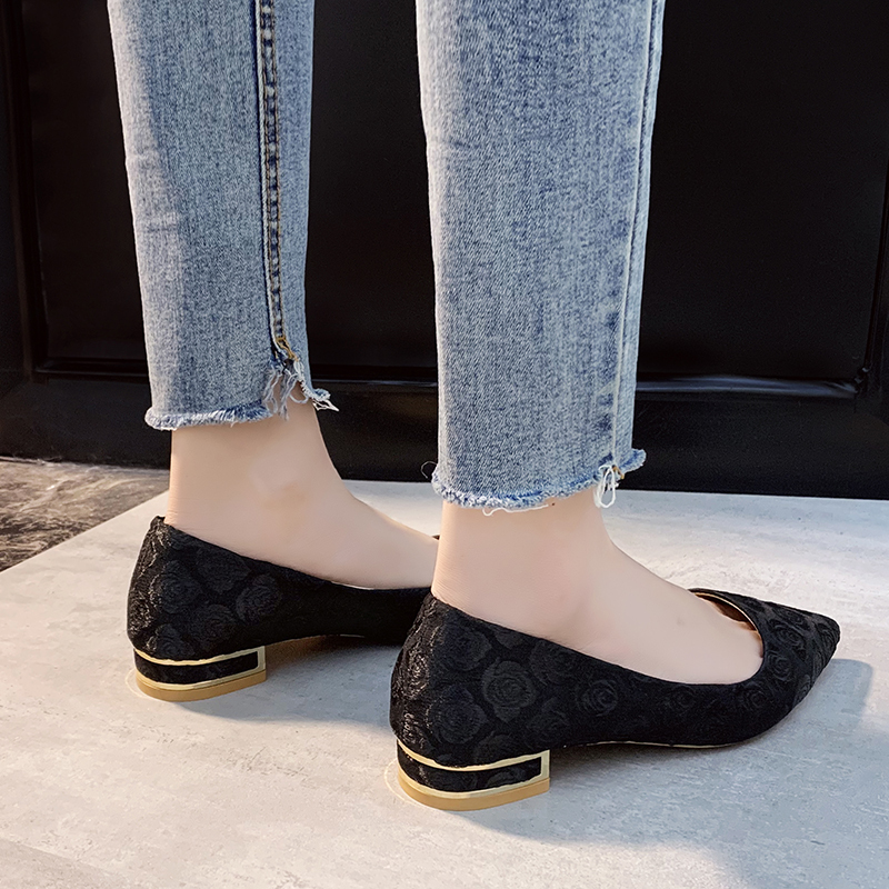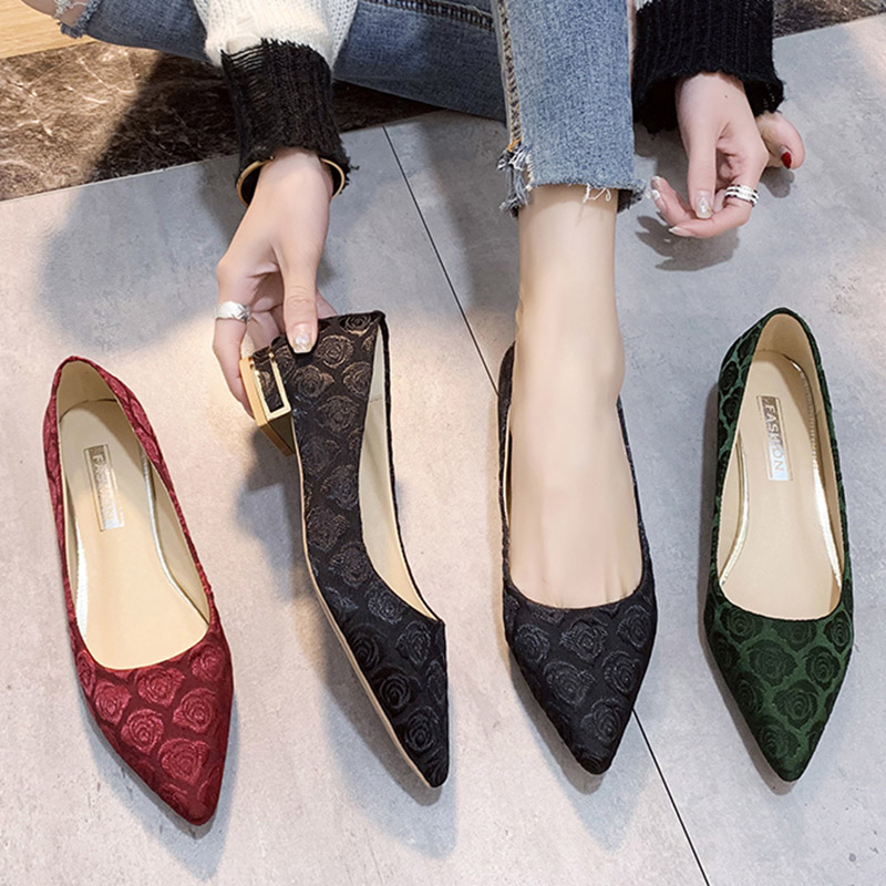 Plus Size Spring Women Shoes Pointed Toe Silk Woman Flats Fretwork Velvet Office Shoes Gold Heels Low Heels Ladies Shoes 7897N