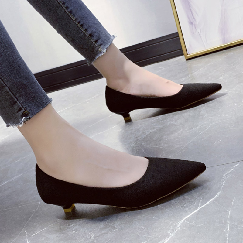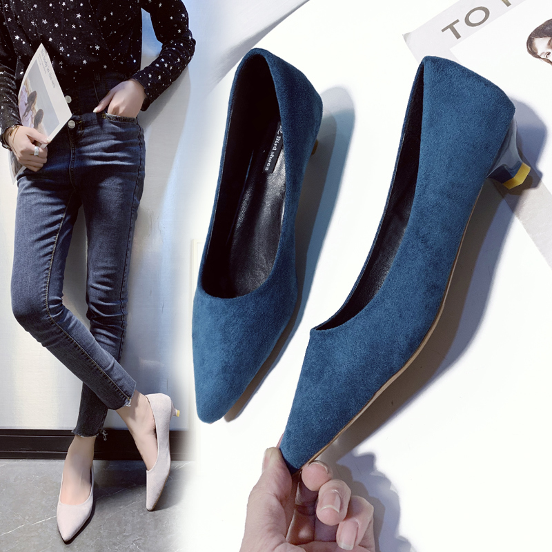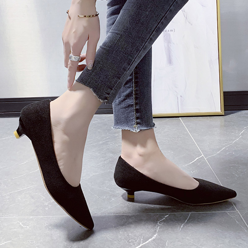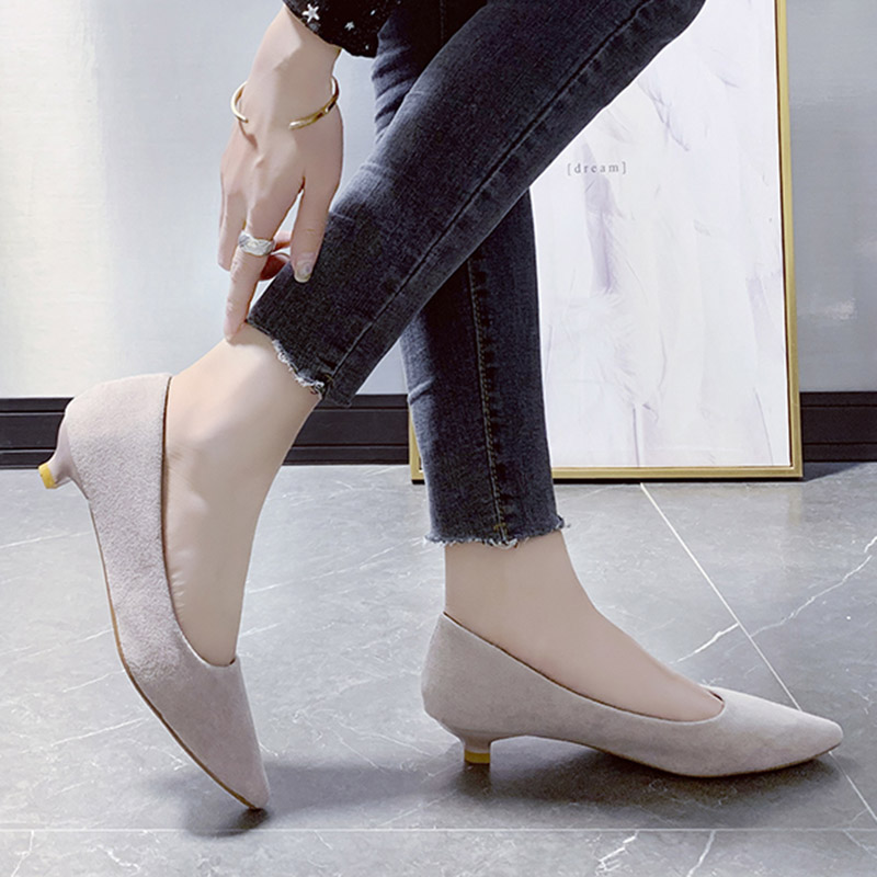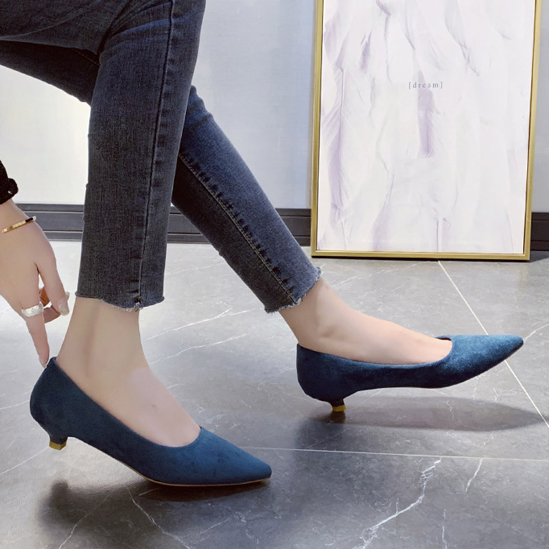 3cm Low Heels Boat Shoes Woman Ol Office Lady Shoes Pointed Toe Pumps Faux Suede Dress Shoes Ladies zapatos mujer Spring 7960N