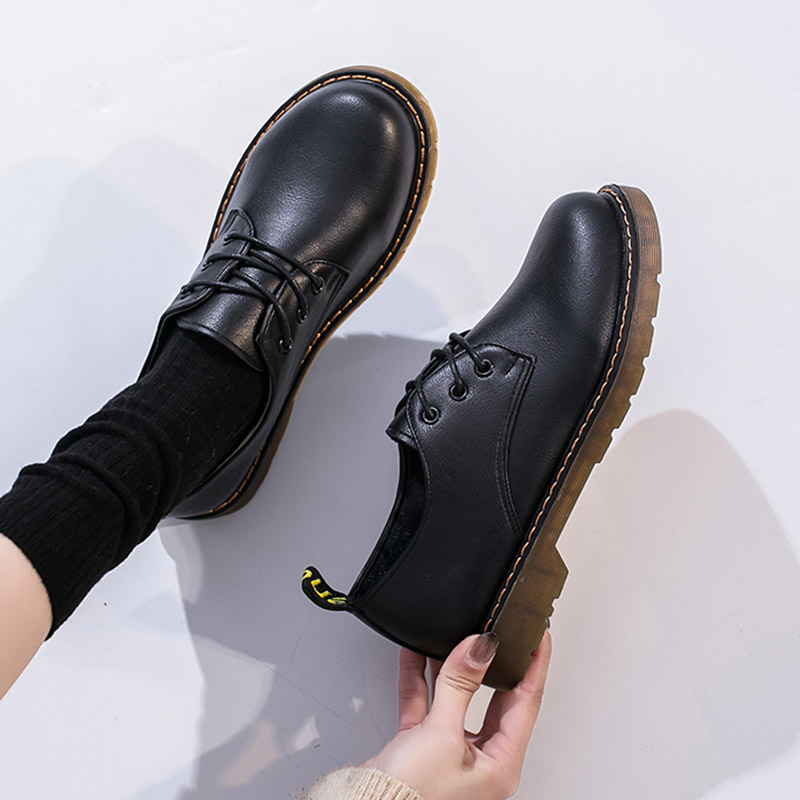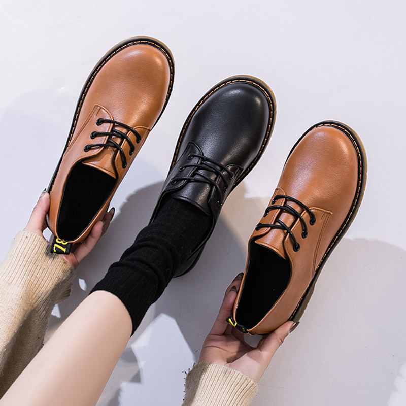 Spring Woman Oxford Shoes Pu Leather Lace Up Casual Shoes Platform Sewing Work Shoes Brown Black Flats zapatos mujer 8006N