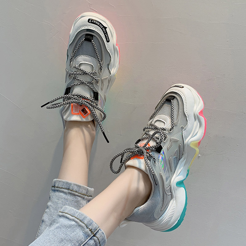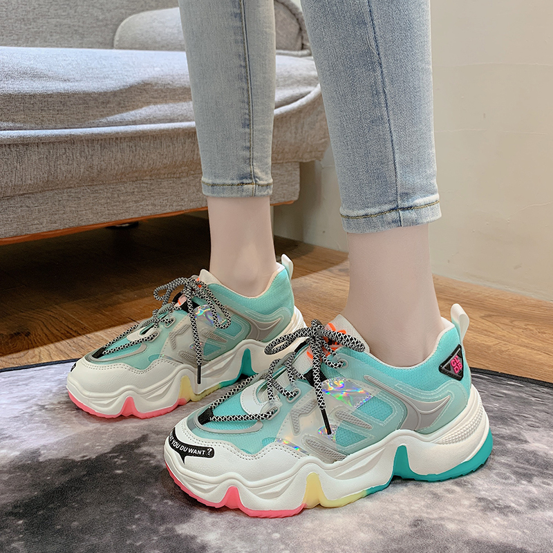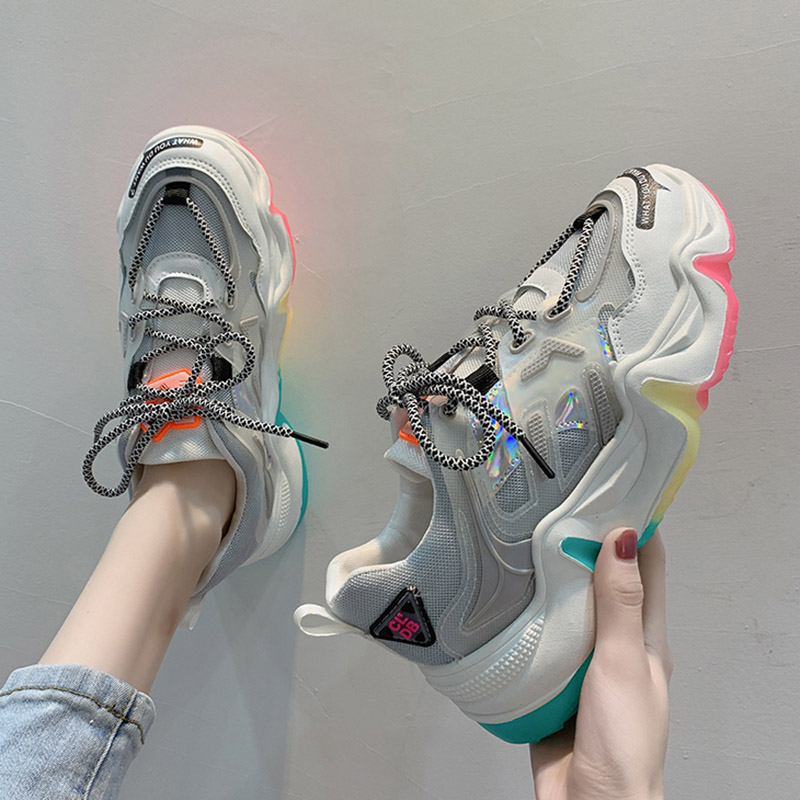 Plus Size 41 Women Sneakers Lace Up Sport Shoes Pu Leather Casual Shoes Platform Sneaker Woman Patchwork Vulcanized Shoe 8033N