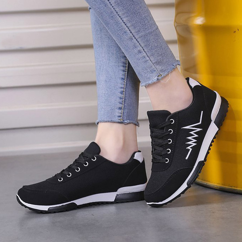 Plus Size Women Sneakers Lace Up Casual Shoes Woman Flats Cotton Sport Shoes Breathable Espadrilles Sneaker zapatos mujer 8087N