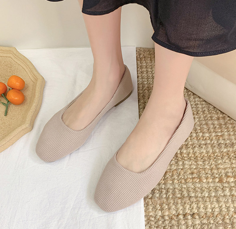 Plus Size Spring Autumn Women Flats Square Toe Boat Shoes Striped Ballet Flats Cotton shallow Slip on Shoes Woman zapatos mujer