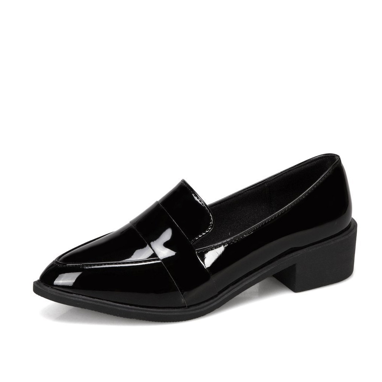 Spring Autumn Women Dress Shoes Patent Leather Boat Shoes Retro Black Oxford Shoes Pointed Toe Loafers zapatos mujer 8155N