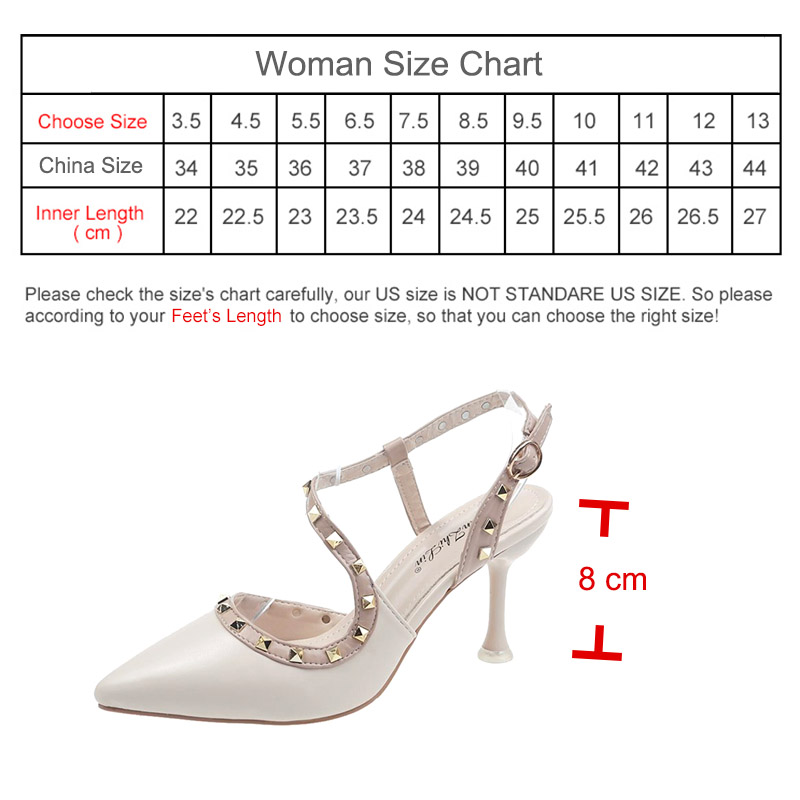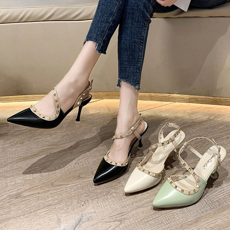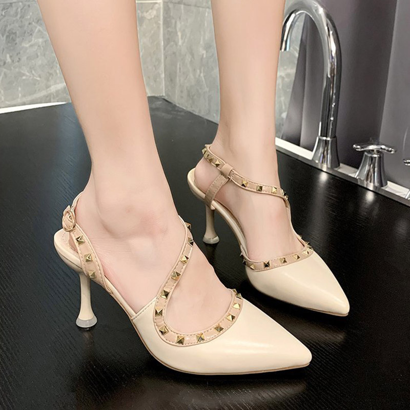 New Woman Sandals Rivet Pumps Pointed Toe High Heels Dress Shoes Black Sexy Heeled Party Shoes Singbacks Sandalias mujer 8187N