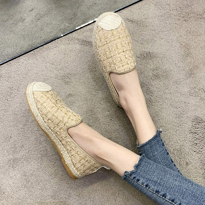 New Women Espadrilles Retro Plaid Fisherman Woman Loafers Casual Shoes Female Mules Slip on Flat Shoes zapatos mujer 8262N