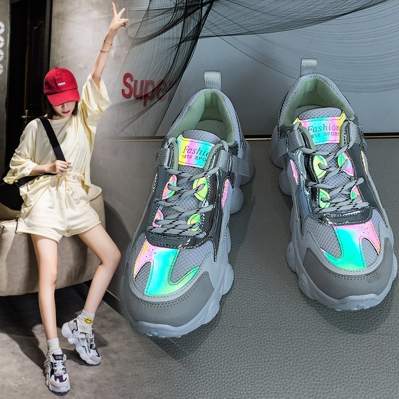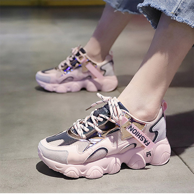 Women Chunky Sneakers New Outdoor Jogging Sneaker Thick Sole Luminous Casual Shoes Female Lace UP Sport Run Shoes 8294N