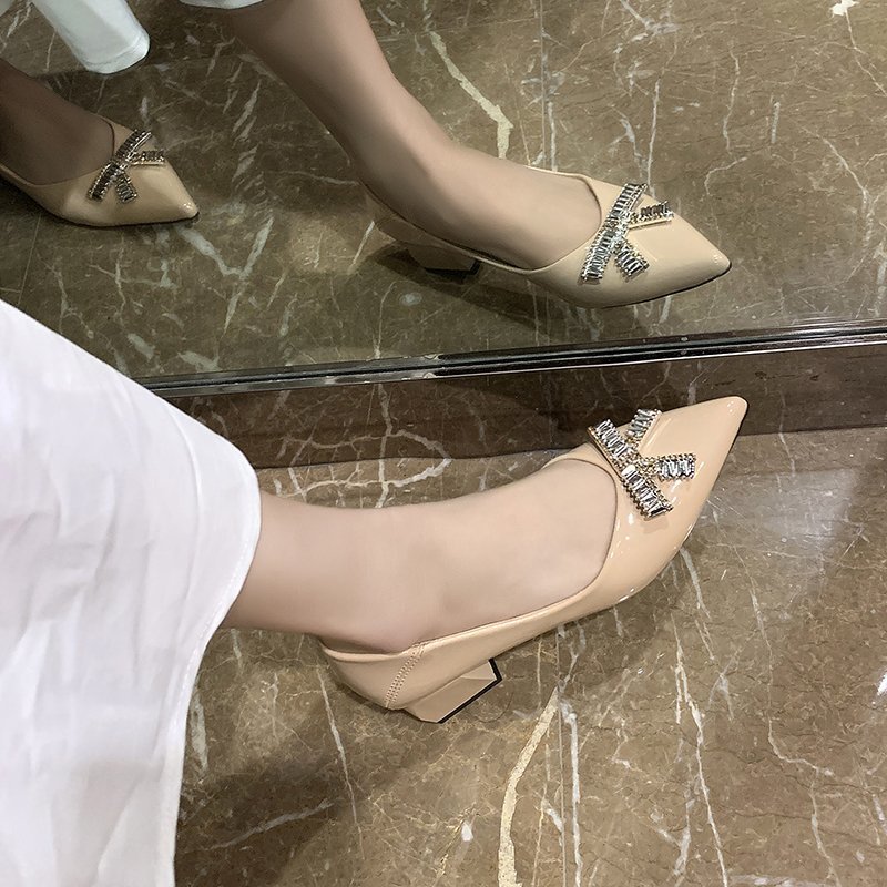 Plus Size 34-43 Ol Office Lady Shoes Crystal Pumps Medium Heels Dress Shoes Women Patent Leather Boat Shoes zapatos mujer 8296N