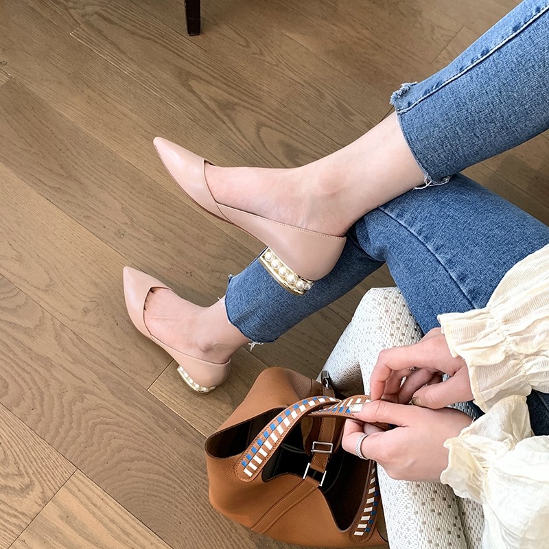 Autumn Women Flats Pearl Heeled Slip on Shoes Woman Ballet Flats Pointed Toe Dress Shoes Faux Suede Ladies Shoes 8301N