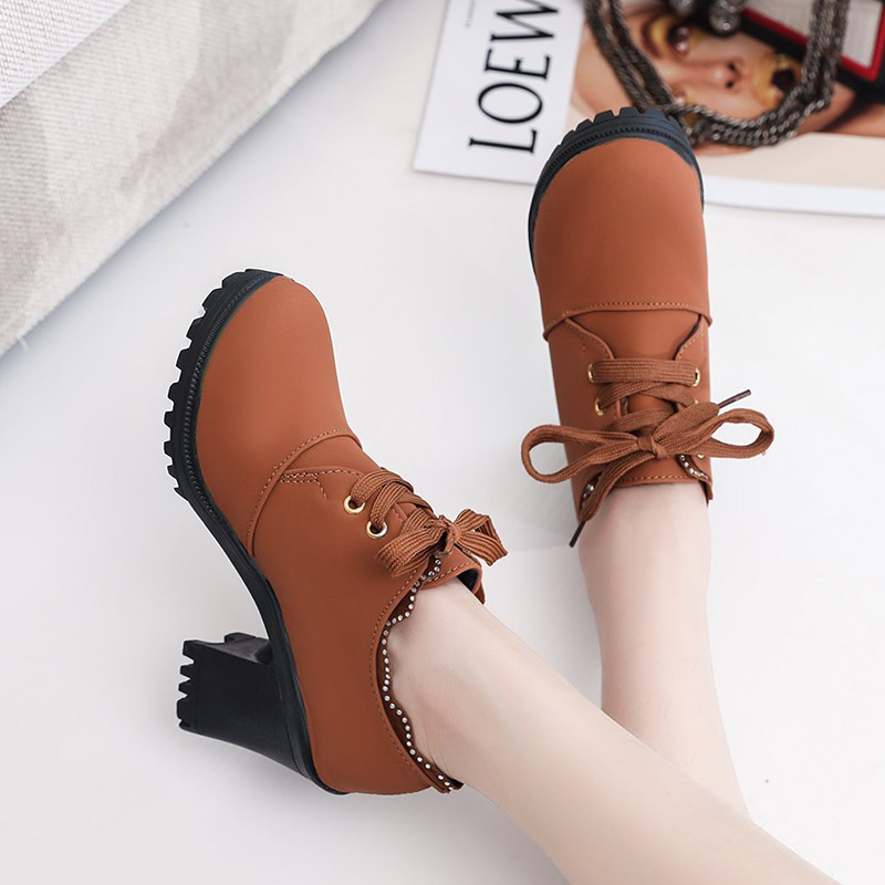 Women Bare boots Winter Autumn Gladiator Lace Up Casual Shoes High Heels Ladies Shoes Woman Platform Pumps With Zip 8304N