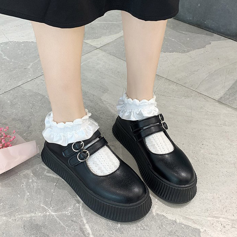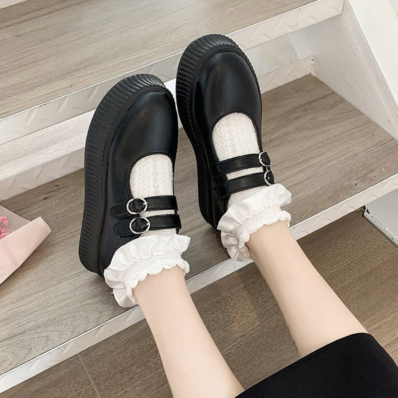 Spring Autumn Women Flats Platform Shoes Double Buckle Lolita Shoes Round Toe Casual Shoes Women Girls Mary Janes Shoes 8306N