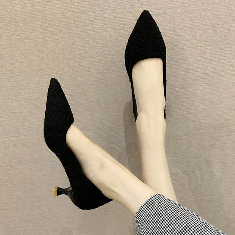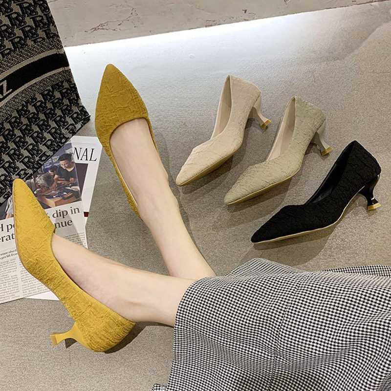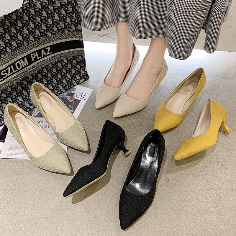 Cheap Women’s Pumps, Buy Quality Shoes Directly from China Suppliers:Spring Autumn 5cm Women Pumps Med Heels Dress Shoes Cotton Silk Boat Shoes Pointed Toe Ladies Shoes zapatos mujer Yellow 8308N