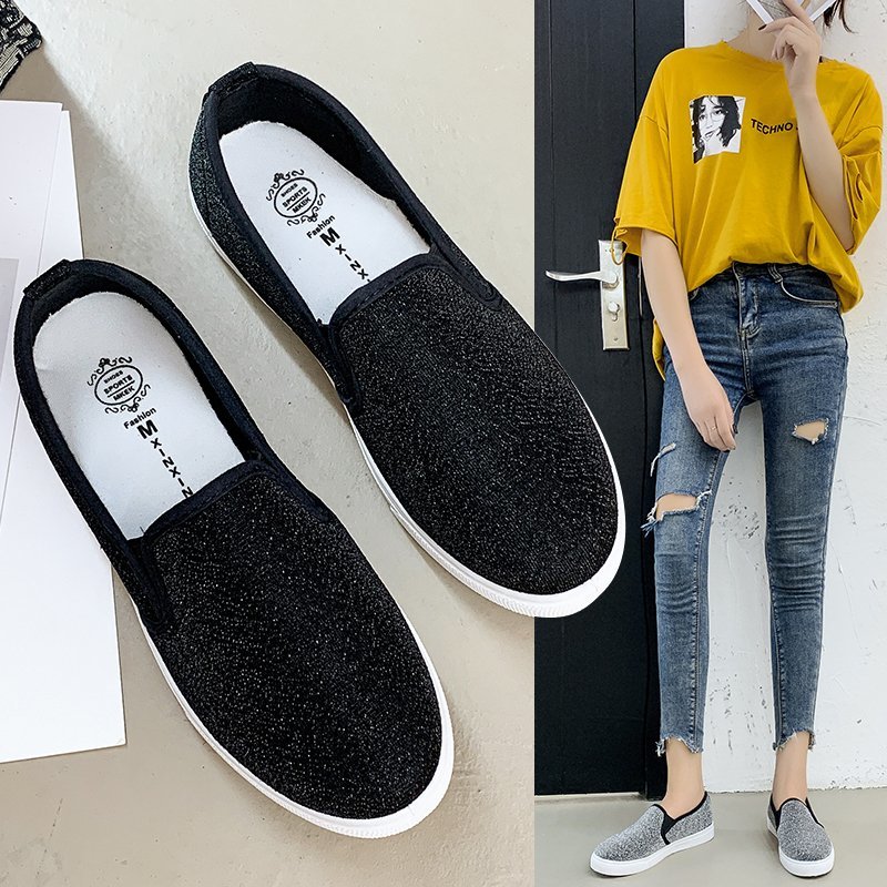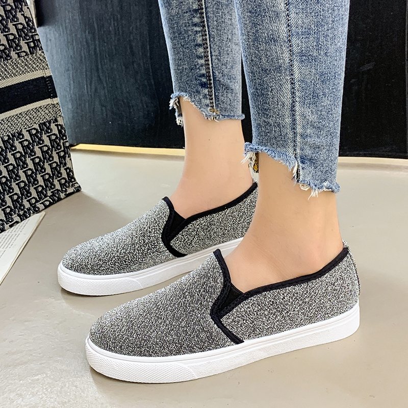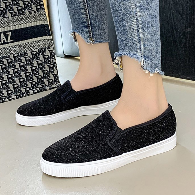 Autumn Women Shoes Sequined Cloth Loafers Black Casual Shoes Slip on Flat Shoes Woman Flats Sneakers zapatos mujer 8349N