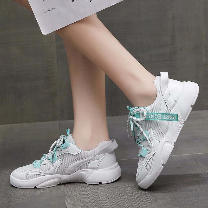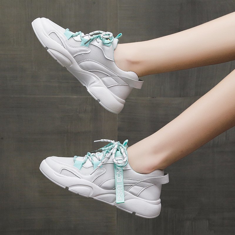 Women Sneakers White Leather Sport Running Sneaker Lace Up Chunky Casual Shoes Woman Thick Sole Dad Shoes trainers 8403N