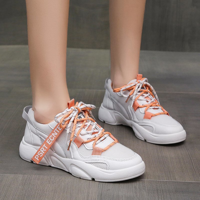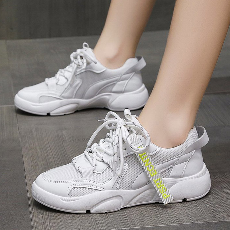 Cheap Women’s Vulcanize Shoes, Buy Quality Shoes Directly from China Suppliers:Women Sneakers White Leather Sport Running Sneaker Lace Up Chunky Casual Shoes Woman Thick Sole Dad Shoes trainers 8403N