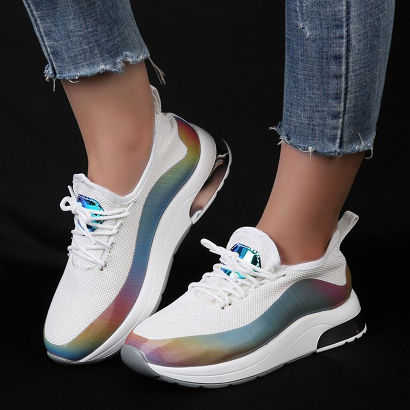 Autumn Spring Women Sneakers Mesh Casual Shoes Lace Up White Thick Sole Outdoor Jogging Sneaker Luxury Shoe Plus Size 8420N