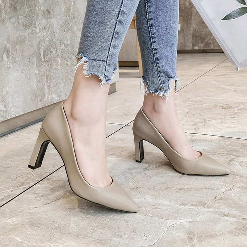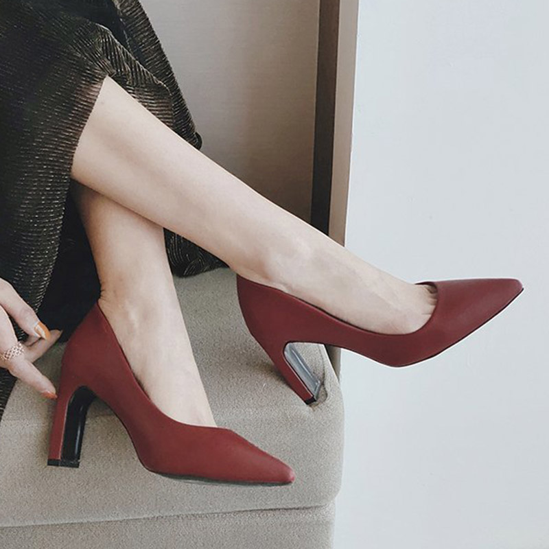 Autumn Spring Women Dress Shoes Super High Heels Pumps Pointed Toe Boat Shoes Basic Pump Ladies Shoes Black Plus Size 8424N