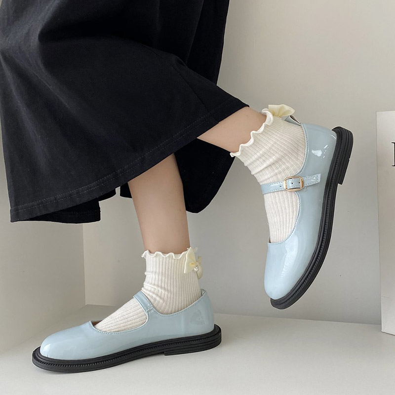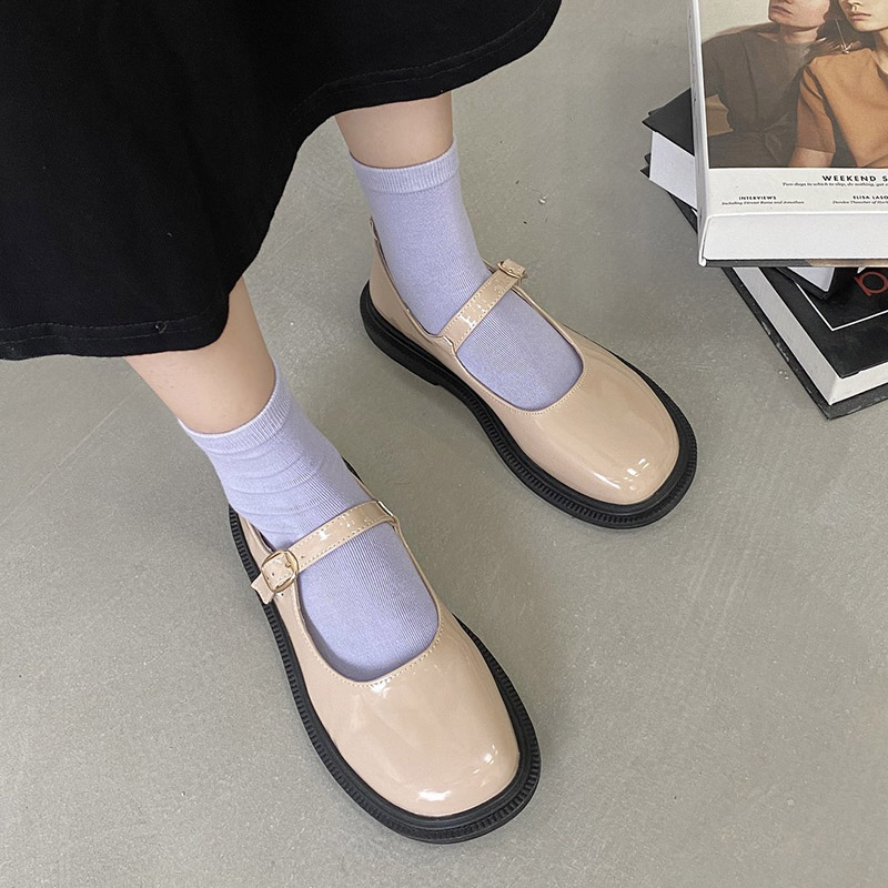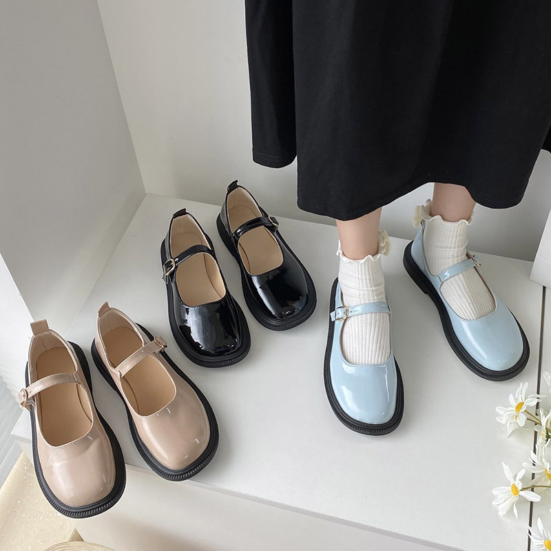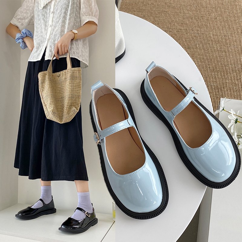 Autumn Women Shoes Patent Leather Flats Mary Janes Shoes Buckle Strap Lolita Shoes Ladies Shallow zapatos mujer Black 8432N