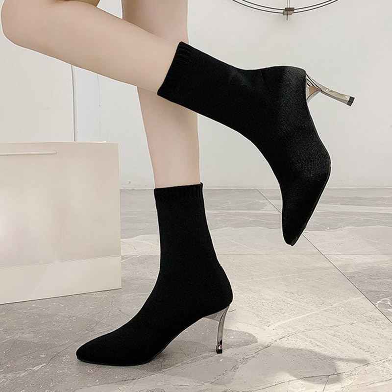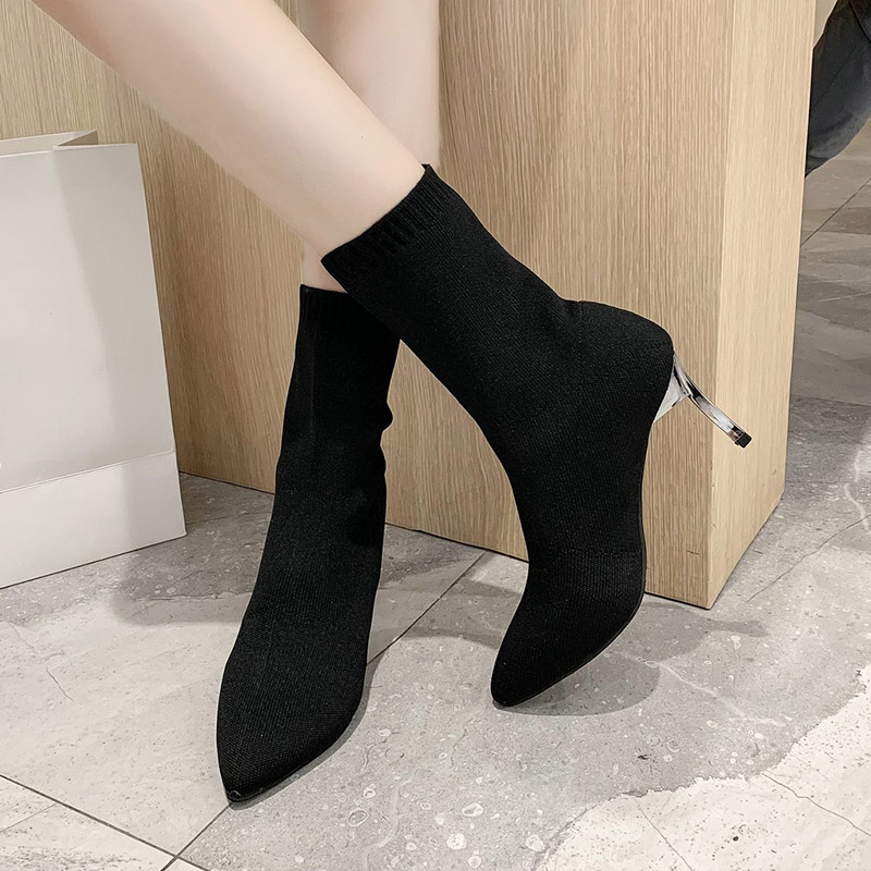 Sexy Sock Boots High Heels Knitting Stretch Boots For Women Fashion Shoes Spring Autumn Ankle Boots Booties Female 8436N