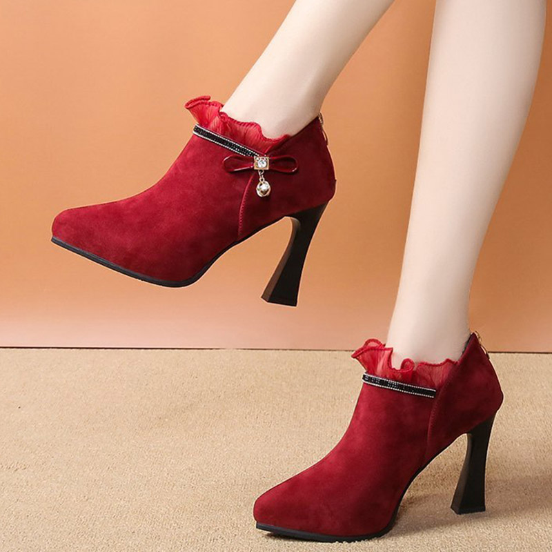 Cheap Ankle Boots, Buy Quality Shoes Directly from China Suppliers:Winter Women Bare Boots Super High Heels Dress Shoes Black Crystal Lace Pumps Pointed Toe Booties Ladies Shoes Red 8435N