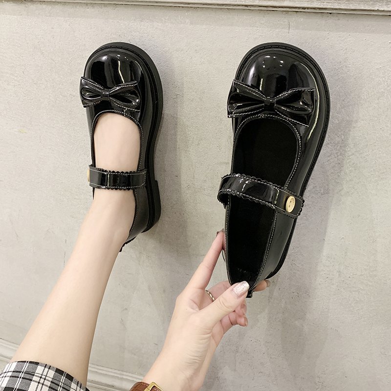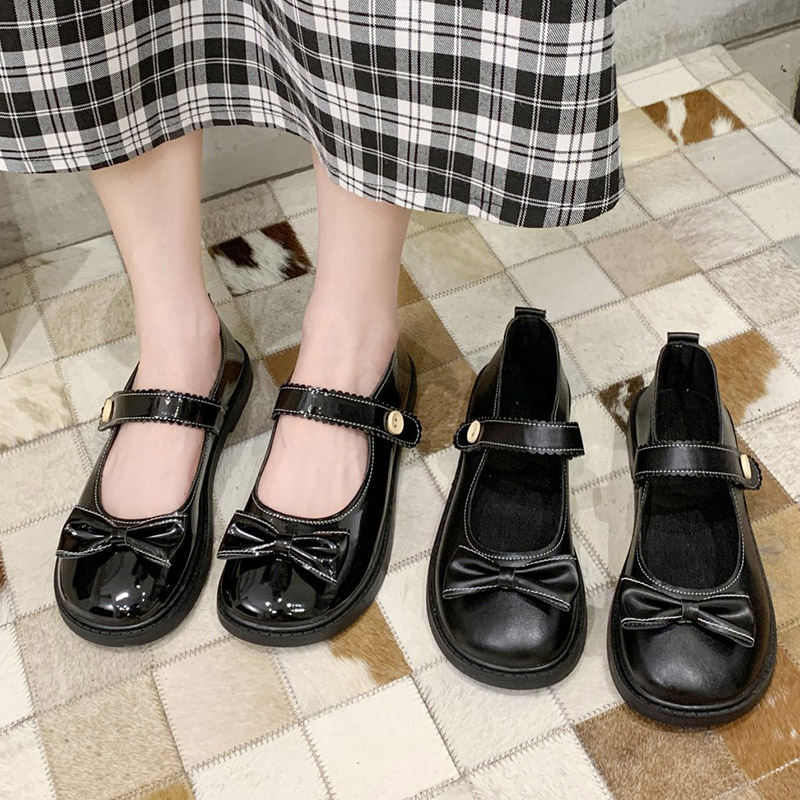 Lolita Shoes Butterfly Knot Mary Janes Shoes Black Patent Leather Woman Flats Comfort Girls Shoe Ladies Autumn Spring 8513N