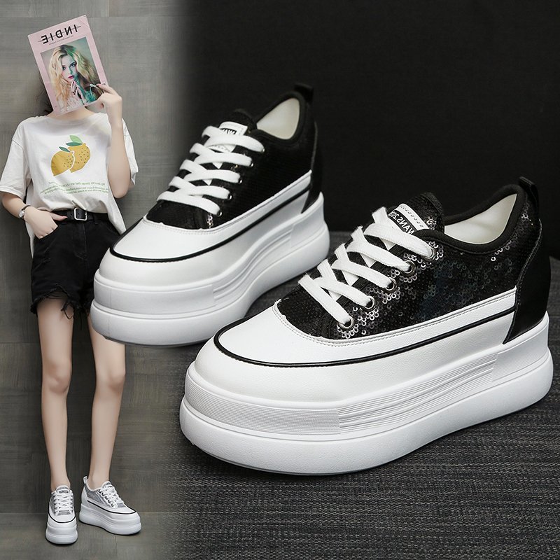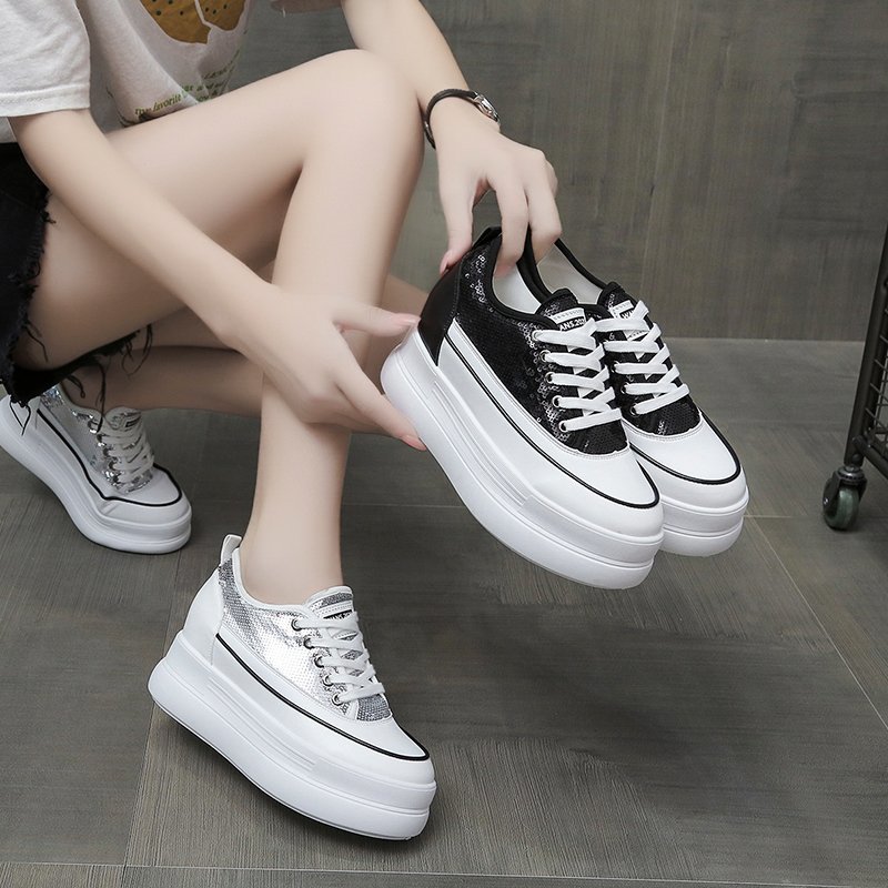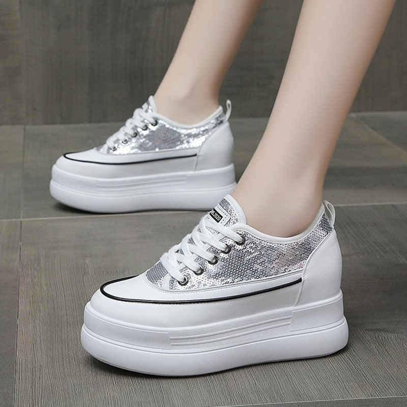 Women Platform Sneakers Bling Casual Shoes Sequins Increasing Thick Sole shoes Glitter Ladies Shoes High top Footwear 8542N